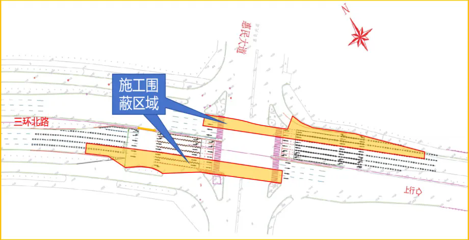 第一階段(約25天):三環(huán)北路/惠民大道交叉口東西向外側(cè)6車道封閉,內(nèi)側(cè)8車道可直行;南北進口禁止車輛直行和左轉(zhuǎn),人行橫道禁止行人通行。