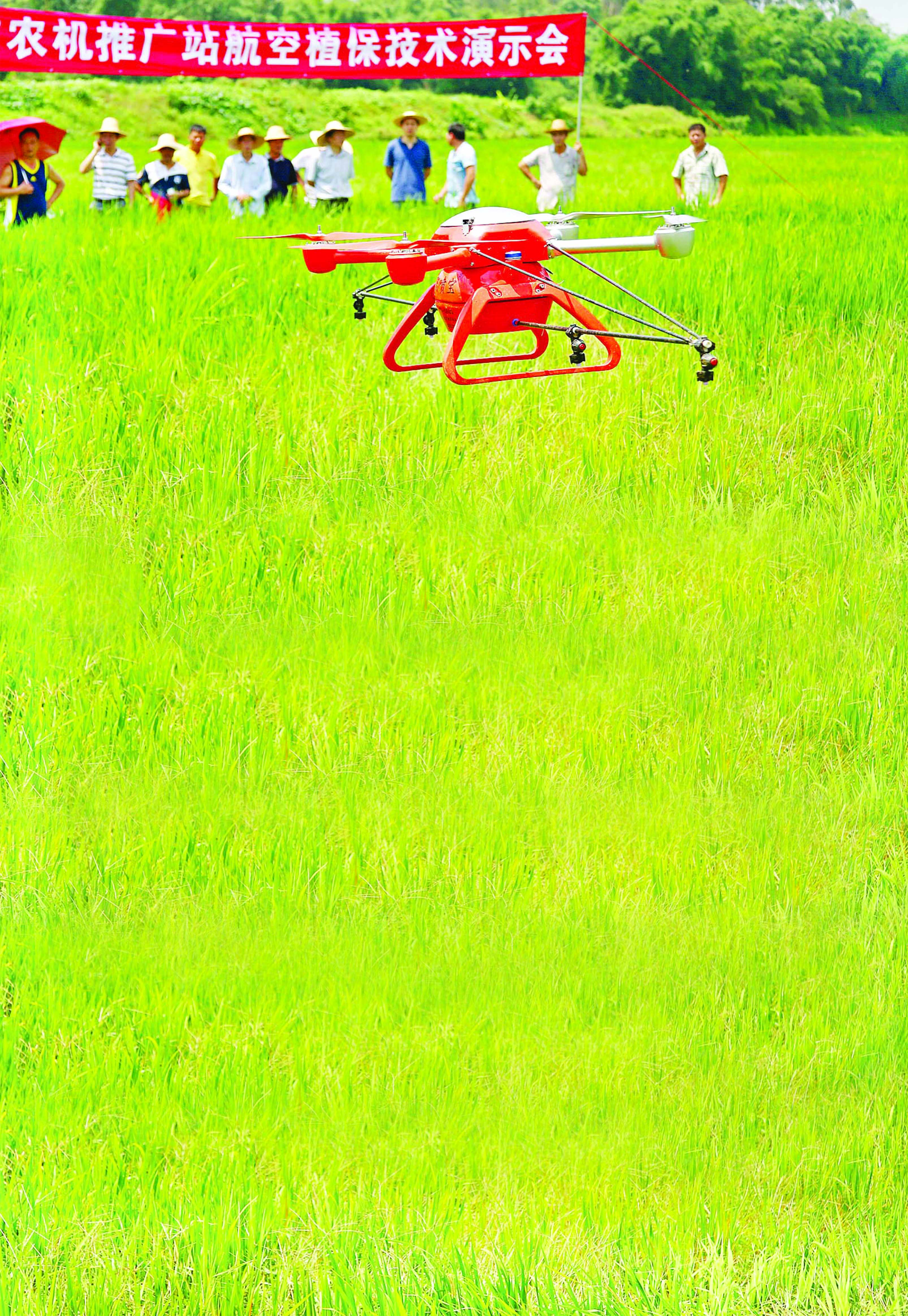 在惠城區(qū)蘆洲鎮(zhèn)的田野里,無人機在農(nóng)田上空盤旋,進行作業(yè)演示,其高效精準(zhǔn)的作業(yè)能力讓傳統(tǒng)農(nóng)業(yè)作業(yè)方式相形見絀。