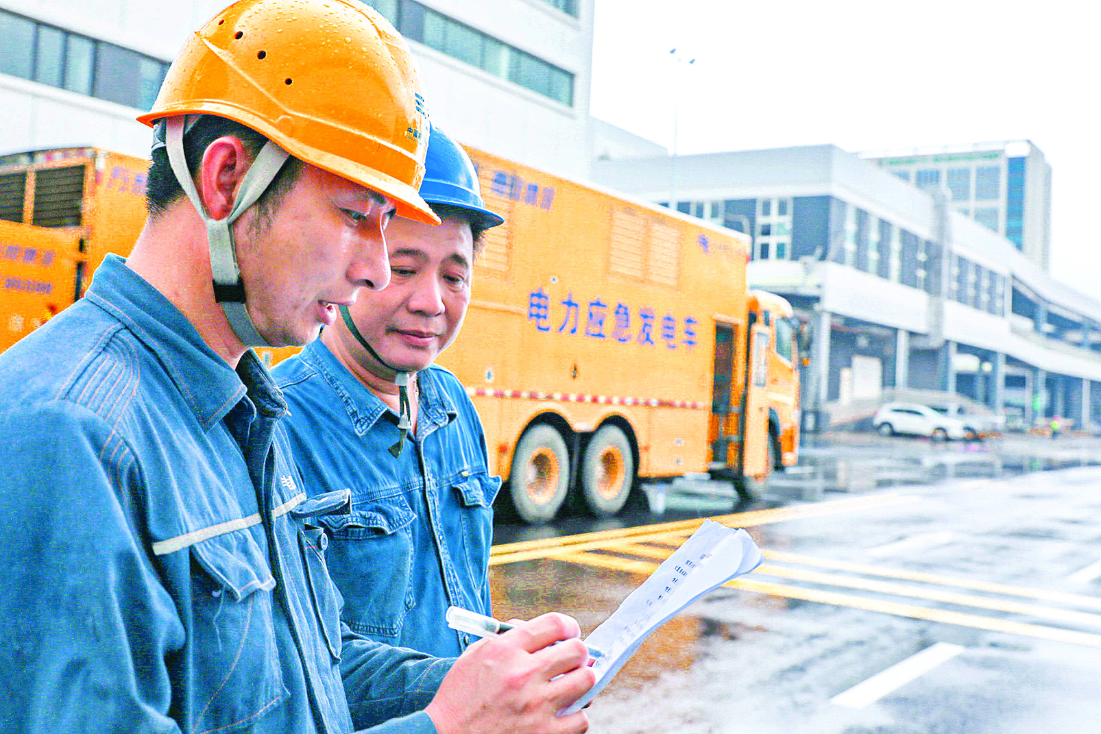 惠州供電局工作人員在綠色農(nóng)產(chǎn)品基地開展保供電工作。 廖偉興 攝