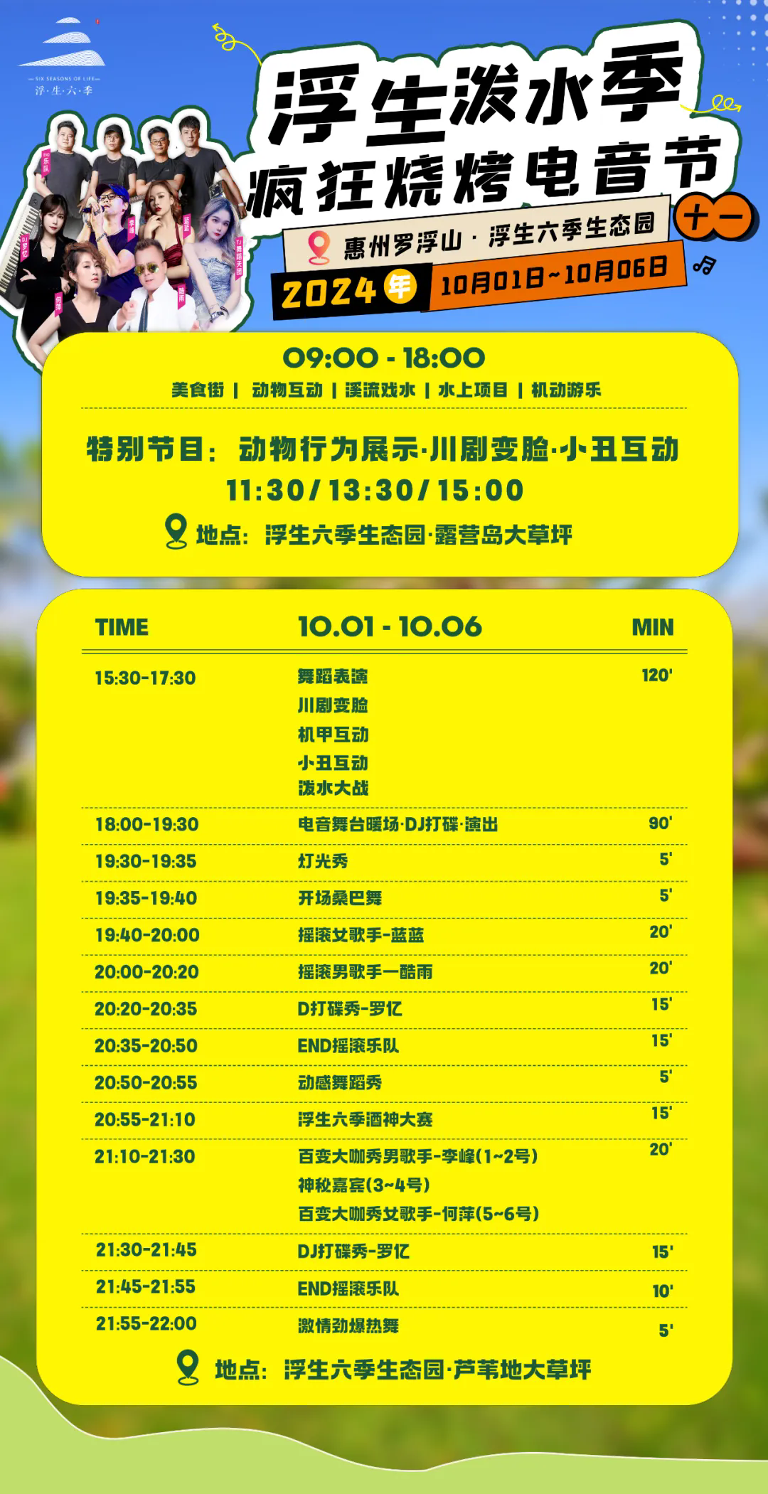 國慶期間,園區(qū)內不同時段不同地點,將會有水上飛人、夢幻泡影、歡樂喜劇人、樂隊演出、演藝巡游、露天電影、篝火晚會等豐富多樣的活動。