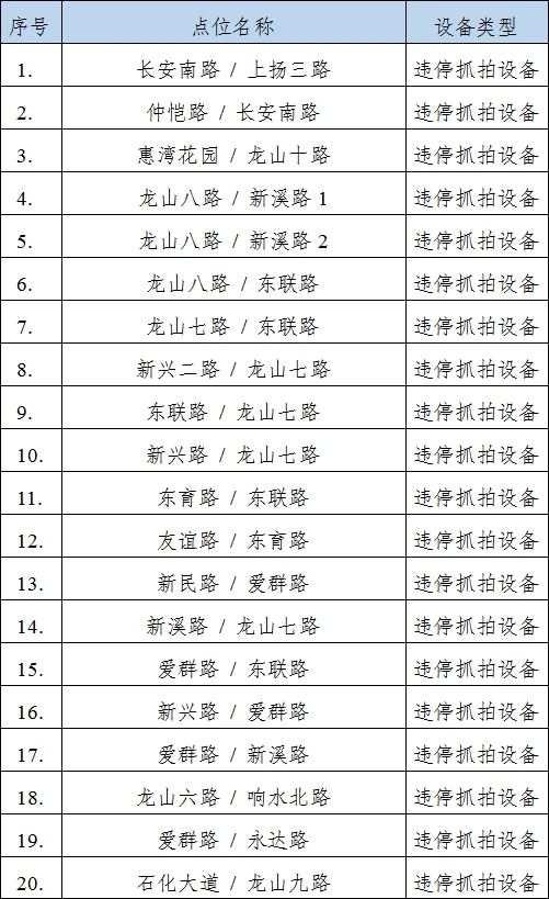 現(xiàn)就視頻監(jiān)控點(diǎn)設(shè)備設(shè)置的地點(diǎn)進(jìn)行通告,通告時間7個工作日,通告期間我區(qū)交通管理部門將對相關(guān)車輛駕駛?cè)说慕煌ㄟ`法行為進(jìn)行警告教育,通告期結(jié)束后將按照相關(guān)法律法規(guī)規(guī)定進(jìn)行處罰。請廣大車輛駕駛?cè)俗杂X遵守交通法律法規(guī)。具體如下: