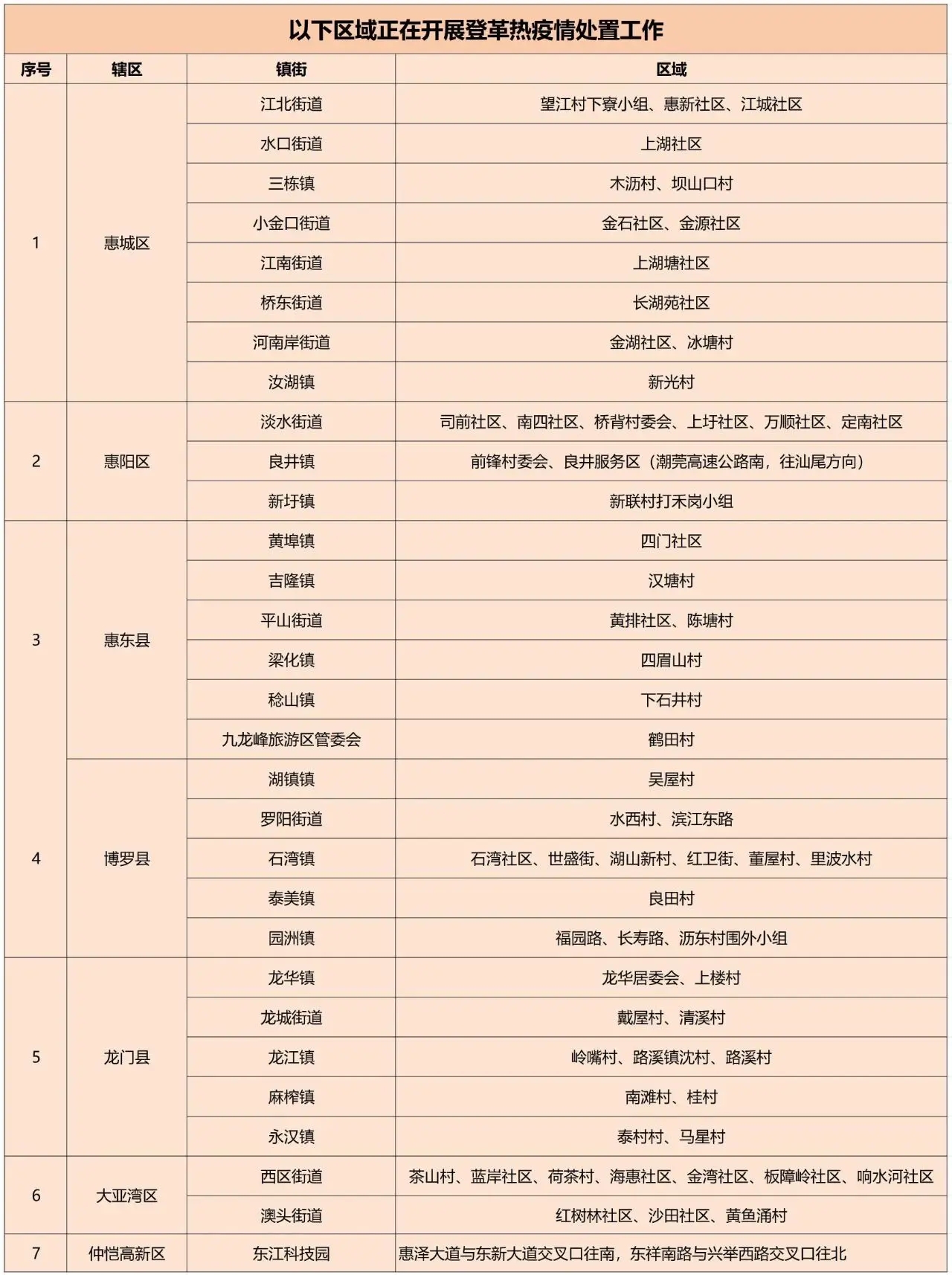以下區(qū)域正在開展登革熱疫情處置,請市民注意做好防范措施