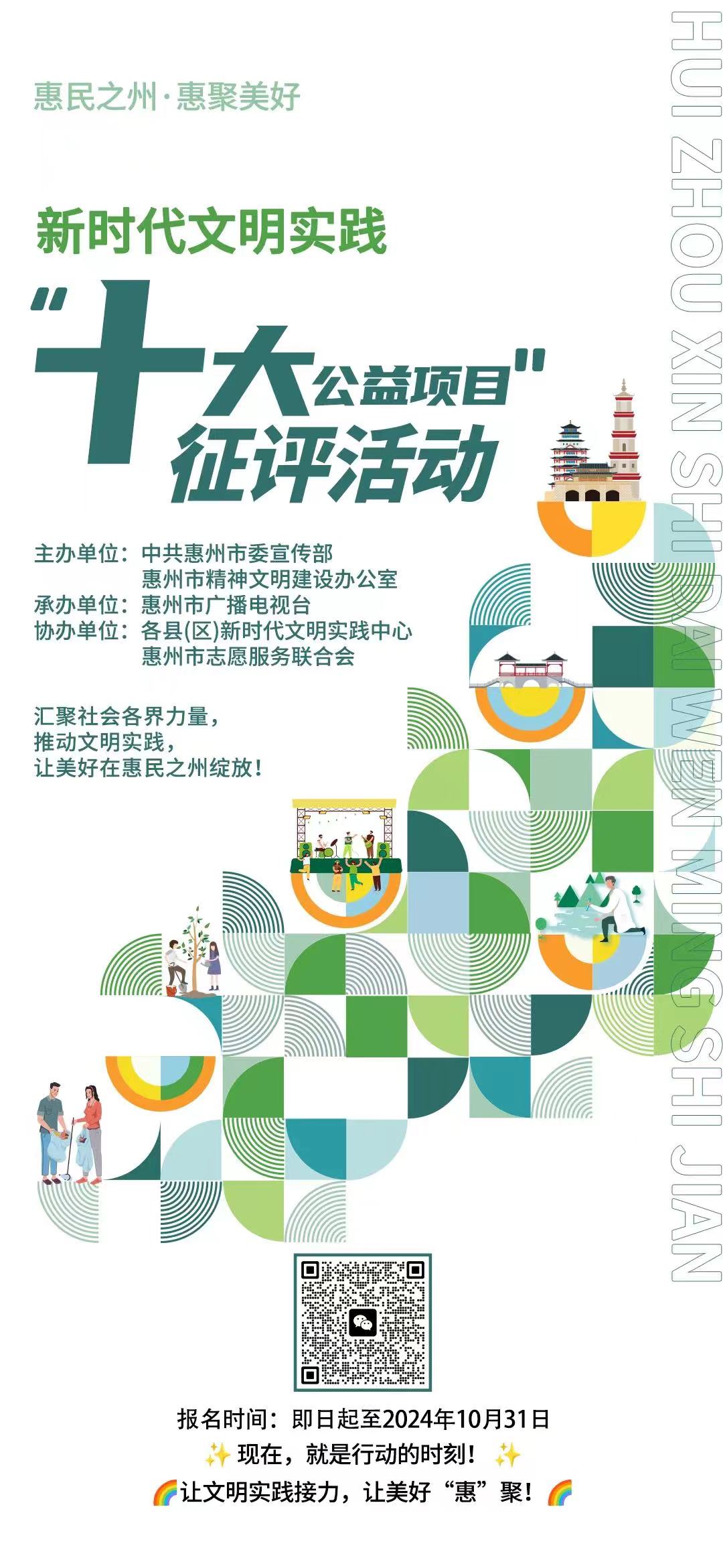 為進一步實施“惠民之州·惠聚美好”傳播工程,推動惠州市新時代文明實踐工作提檔升級,激發(fā)社會各界參與文明實踐的熱情與創(chuàng)造力,圍繞文明實踐賦能“百千萬工程”,精準對接群眾需求,中共惠州市委宣傳部、惠州市精神文明建設辦公室開展惠民之州·惠聚美好——新時代文明實踐“十大公益項目”征評活動。