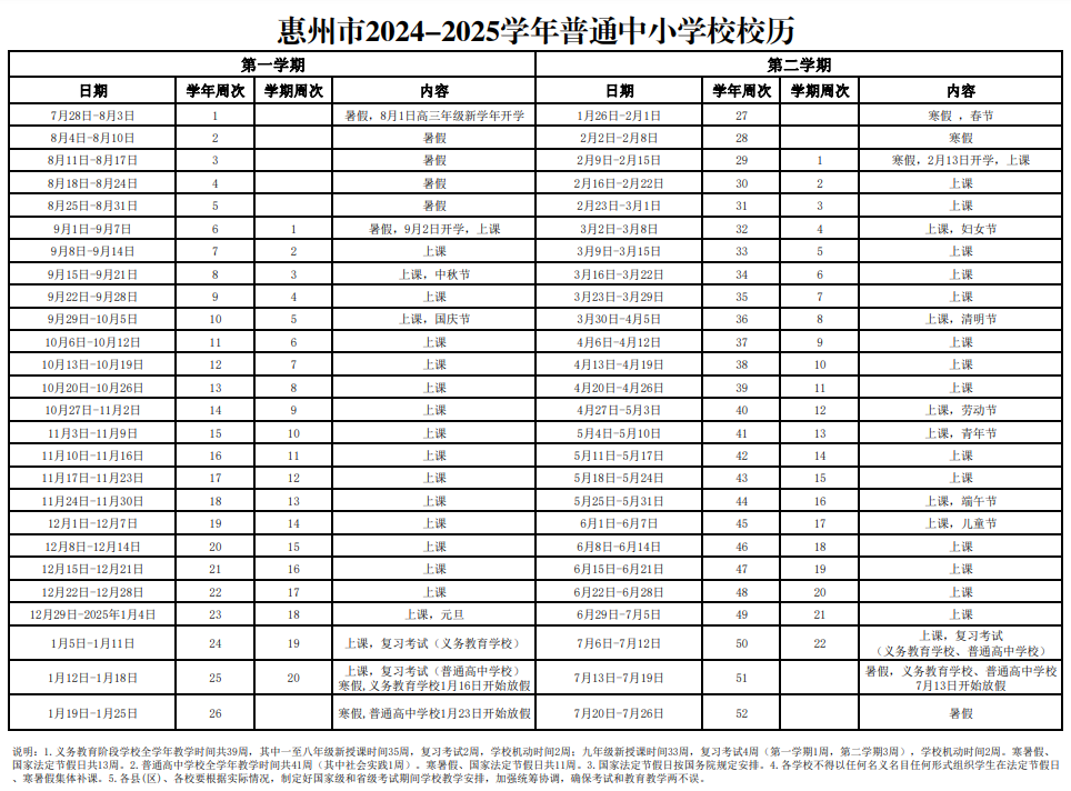 惠州市2024-2025學(xué)年普通中小學(xué)校歷