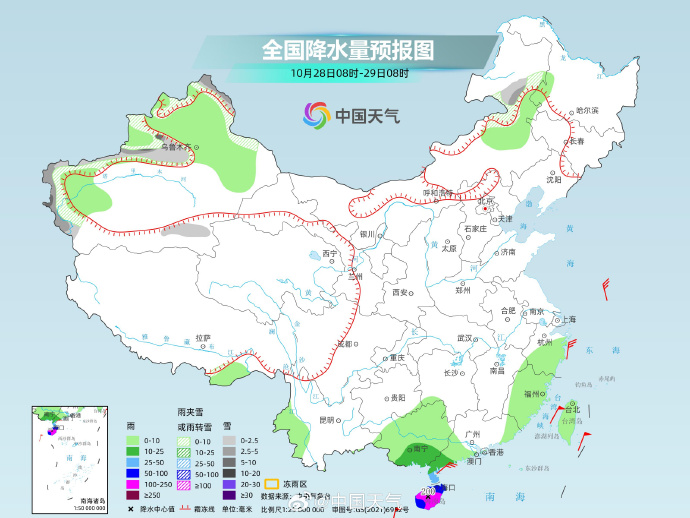 中央氣象臺(tái)10月28日09時(shí)發(fā)布:“潭美”已減弱為熱帶低壓,但它的風(fēng)雨影響還在持續(xù)中,今起三天(10月28日至30日),海南部分地區(qū)暴雨或大暴雨來襲。未來幾天,冷空氣強(qiáng)度較弱,長(zhǎng)江以北地區(qū)氣溫將整體偏高,京津冀等地或現(xiàn)霧和霾天氣,大家外出需注意防護(hù)。據(jù)中國(guó)天氣網(wǎng),未來幾天,“潭美”將在南海持續(xù)回旋,生命史較長(zhǎng),對(duì)我國(guó)華南沿海及南部海區(qū)等地影響時(shí)間至少持續(xù)至本月底。
