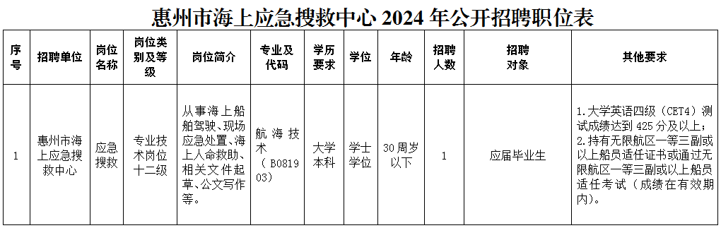附件:1惠州市海上應(yīng)急搜救中心2024年公開招聘職位表.docx