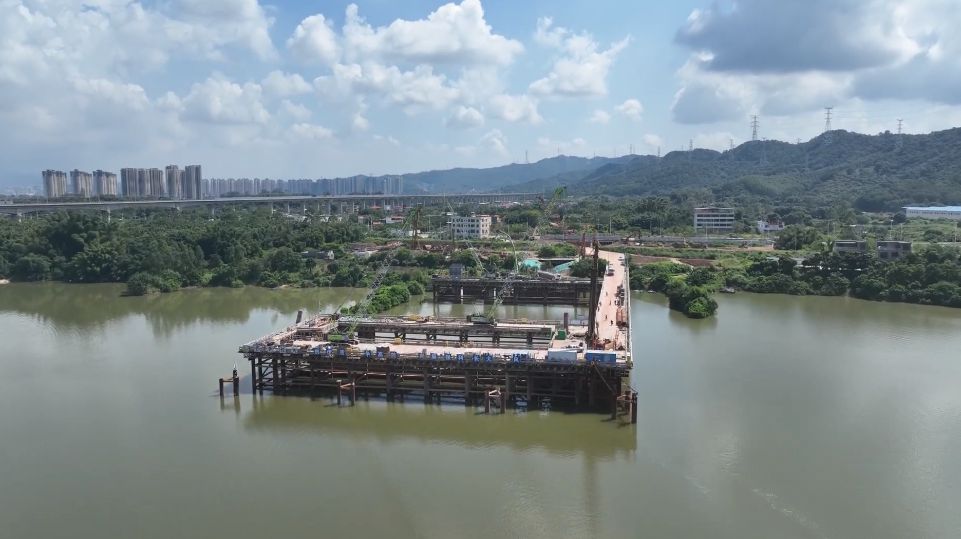 惠肇高速東江特大橋加快建設。惠肇高速項目供圖