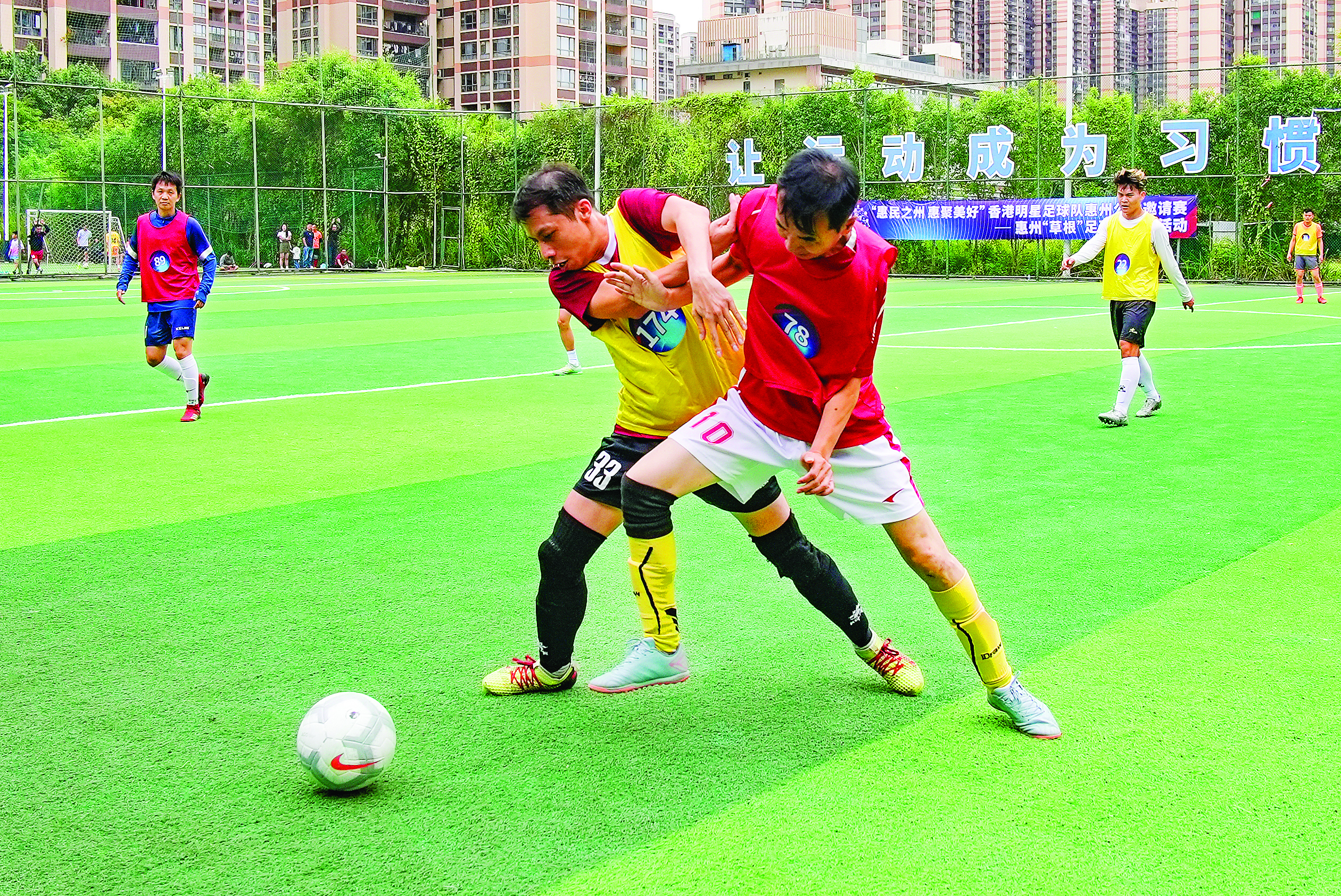 不同行業(yè)、年齡段球員在綠茵場(chǎng)上全力以赴