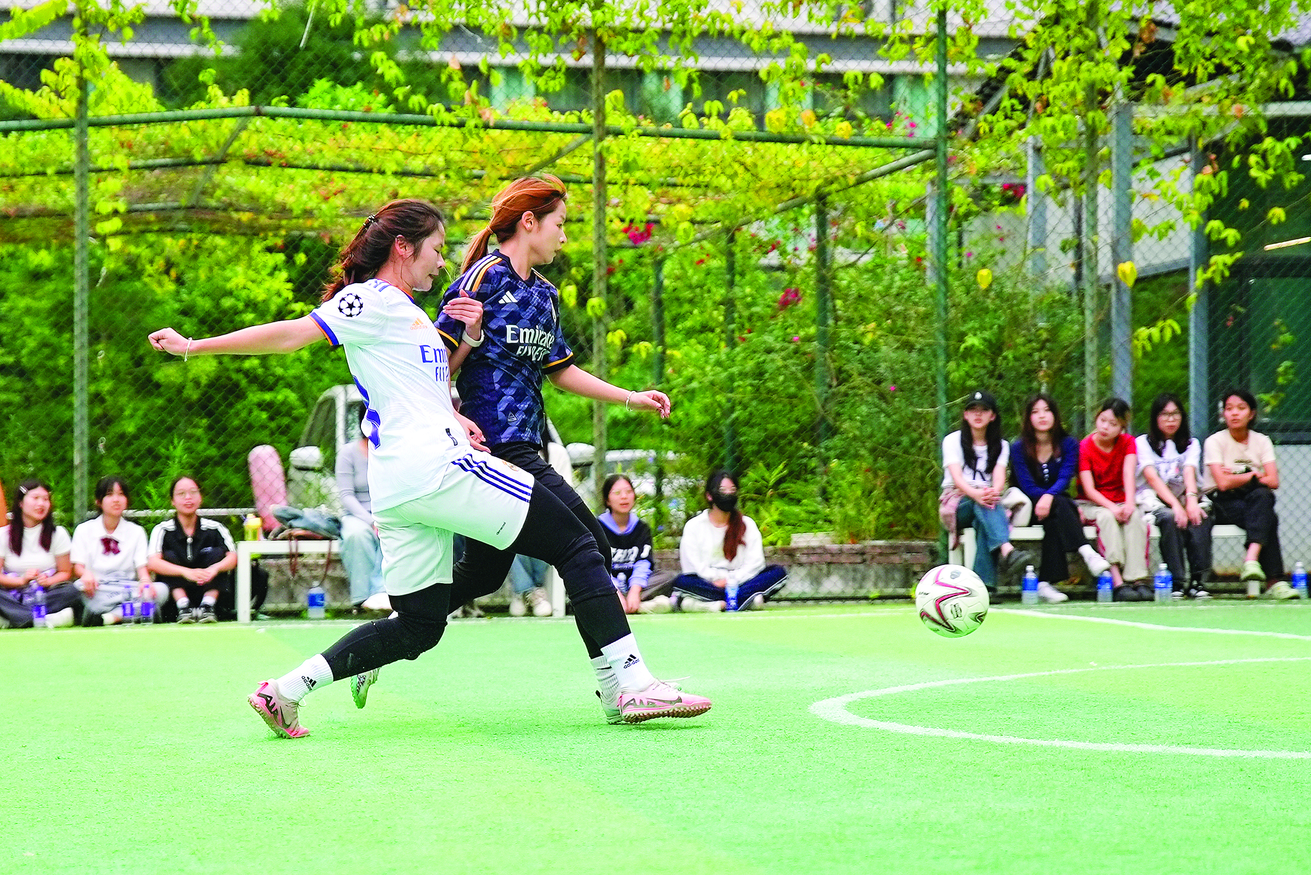 惠州市惠臺(tái)學(xué)校是全國青少年足球特色示范校,14歲的張玲華是該校初二年級(jí)學(xué)生,在“8對(duì)8”對(duì)抗賽中,她司職后衛(wèi),為球隊(duì)貢獻(xiàn)了多次精彩攔截和解圍。張玲華說,惠臺(tái)學(xué)校經(jīng)常舉辦班級(jí)足球聯(lián)賽,近兩年她的足球技術(shù)進(jìn)步很快,希望未來能更進(jìn)一步。對(duì)于自己最喜歡的球星,她說是C羅,因?yàn)樗殬I(yè)素養(yǎng)高,射門完美。