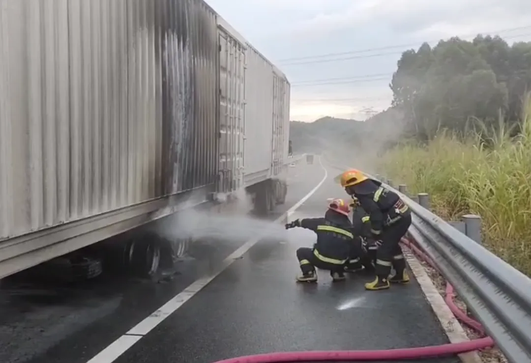 一物流貨車輪胎突然起火