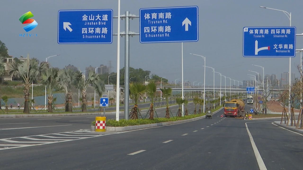 金山大道南段,北起金山大道與體育南路交叉路口,南接泰祥路,主道8車(chē)道,輔道4車(chē)道,共計(jì)雙向12車(chē)道,設(shè)計(jì)時(shí)速60公里/小時(shí),全長(zhǎng)4.6公里。記者今天上午在惠州大道南段施工現(xiàn)場(chǎng)看到,路面標(biāo)識(shí)標(biāo)線、全線路牌、紅綠燈所有交安設(shè)施已經(jīng)安裝到位,工人正在做通車(chē)前的路面清潔、人行天橋等附屬設(shè)施的完善收尾工作。