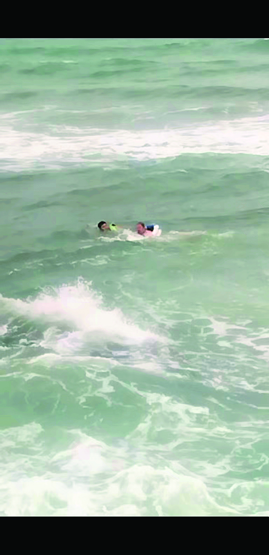 楊守源(左)在海中救人。(視頻截圖)