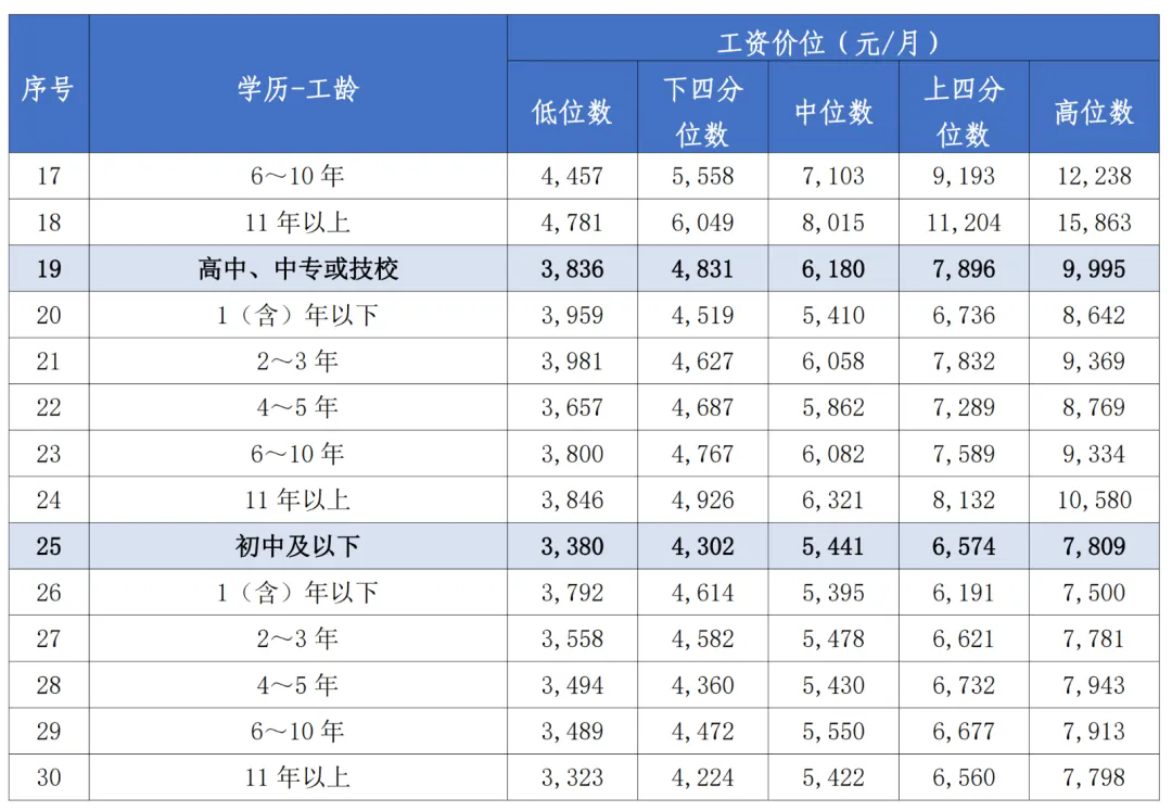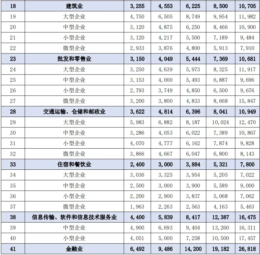 (部分行業(yè)工資價(jià)位截圖)