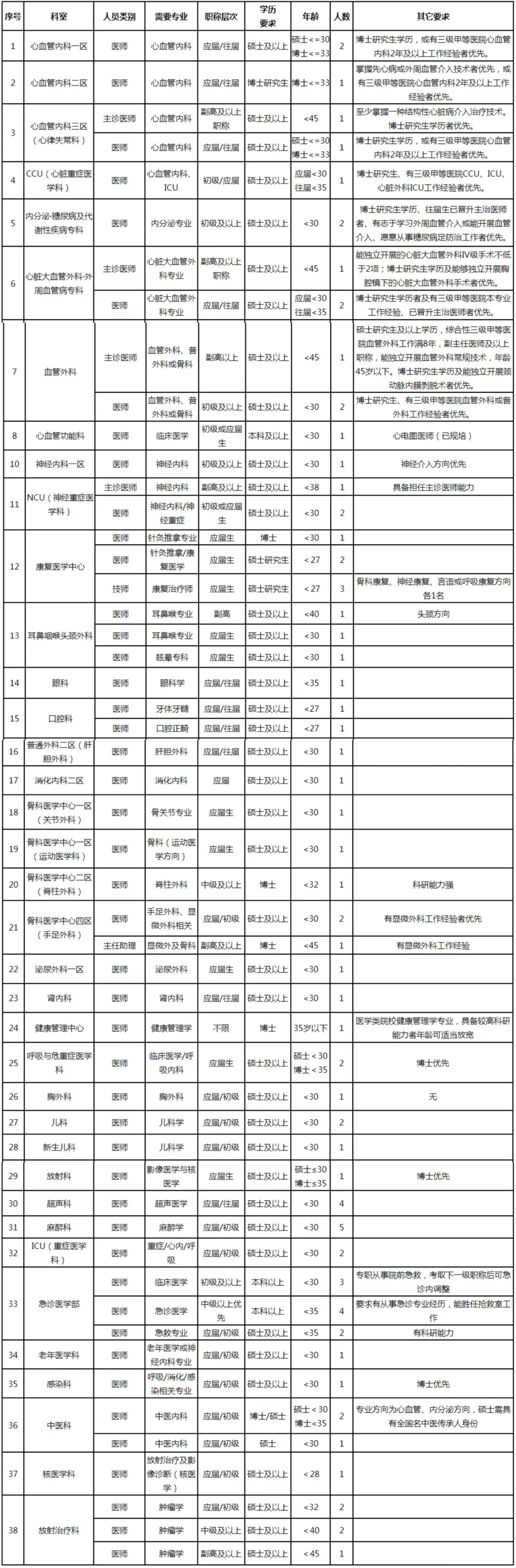 獲聘人員為臨編合同制員工,工資績效待遇與醫(yī)院事業(yè)編制內(nèi)員工“同工同酬”。其中初級醫(yī)師個人年收入一般為20-35萬元(含五險一金,下同),初級技師個人年收入約18-25萬元;研究生學歷提供學歷補貼和1年免費過渡住房,博士或副高以上人才擇優(yōu)給予事業(yè)編制并提供安家費和住房補貼。