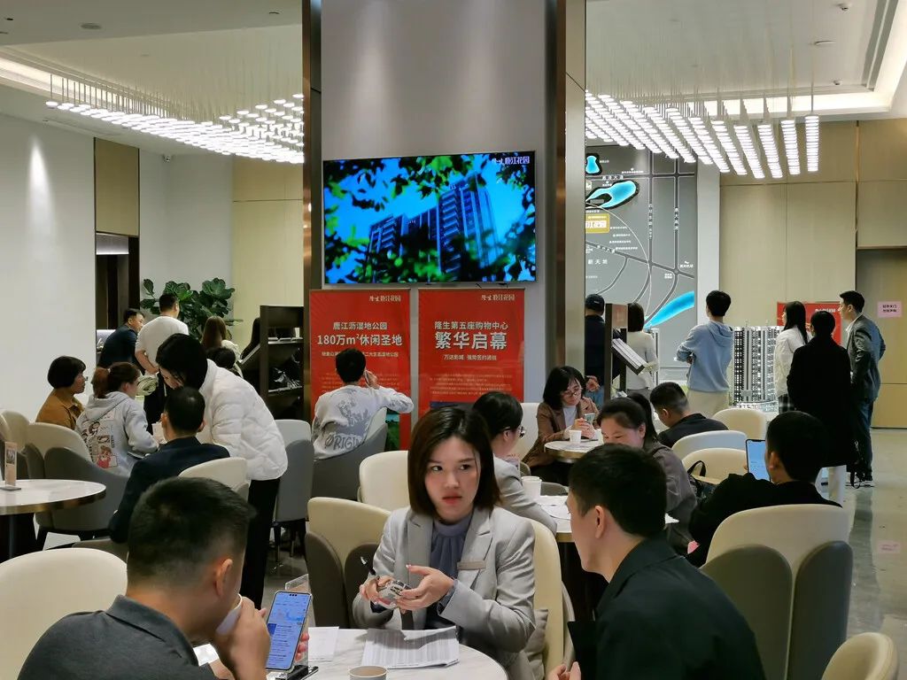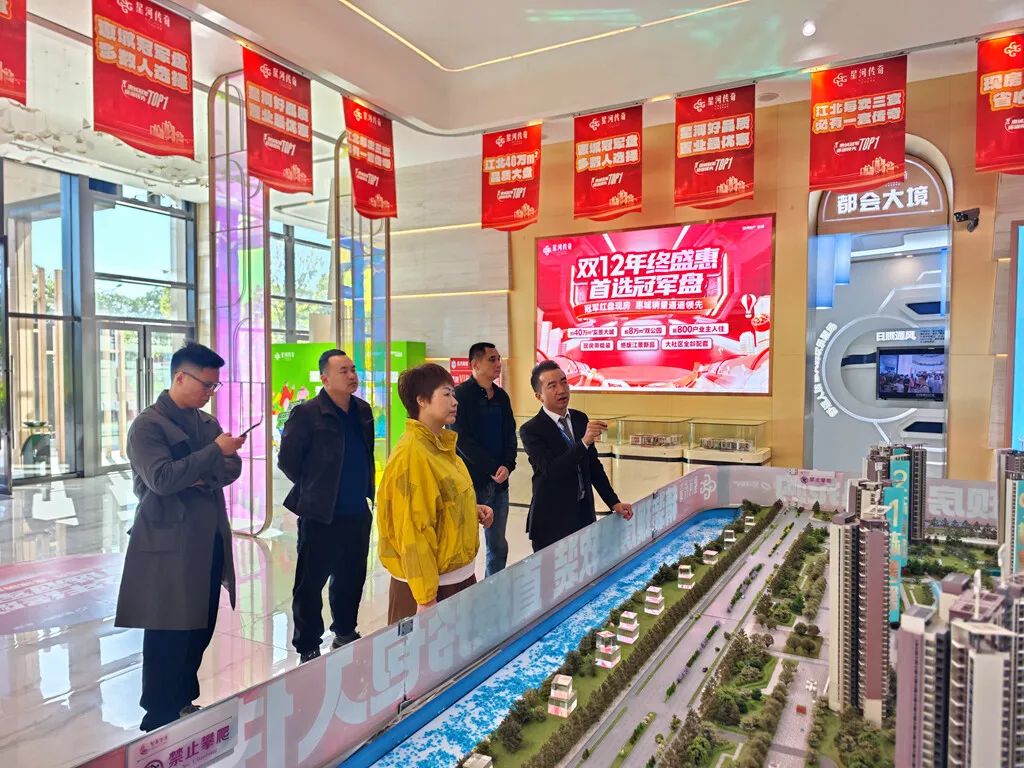 11月23日上午,在市區(qū)江北金石三路的智創(chuàng)星圖項(xiàng)目,記者在售樓處看到,有10多批客戶正在沙盤區(qū)和洽談區(qū)看房。一位工作人員還不停用對講機(jī)連線樣板房區(qū),通知對方準(zhǔn)備接待客戶看房。