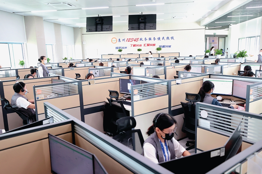 惠州12345政務(wù)服務(wù)便民熱線話務(wù)區(qū)。惠州日報記者王建橋 攝