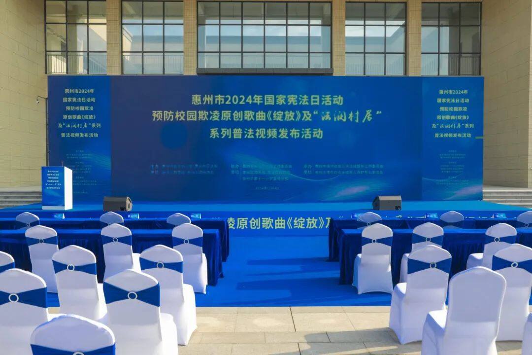 在第十一個國家憲法日,惠州市律師協(xié)會預(yù)防校園欺凌原創(chuàng)歌曲、“法潤村居”系列普法視頻發(fā)布活動在惠州市青少年法治教育基地隆重舉行。此次活動由市普法辦公室、市司法局、市教育局以及市律師協(xié)會共同主辦。市律師行業(yè)黨委專職副書記謝峰、普法與依法治理科科長余雨植,惠城區(qū)司法局,惠州市、惠城區(qū)教育局,市律師協(xié)會等單位相關(guān)負(fù)責(zé)人,以及160余名惠州執(zhí)業(yè)律師、第十一小學(xué)金榜分校部分師生參加活動。