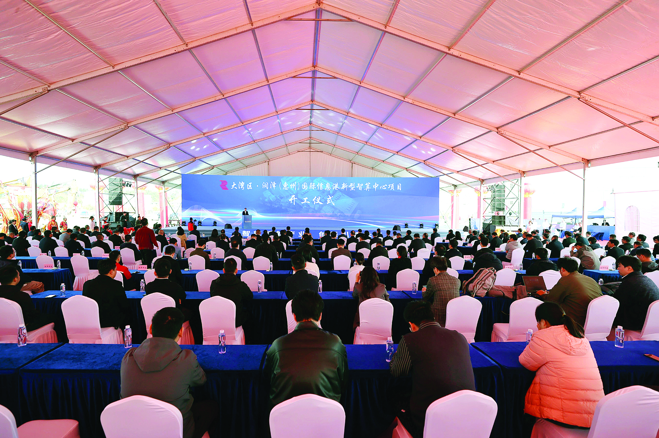 潤(rùn)澤(惠州)國(guó)際信息港新型智算中心項(xiàng)目開(kāi)工儀式現(xiàn)場(chǎng)。 惠州日?qǐng)?bào)記者楊建業(yè) 黃鑫威 哈鵬 攝