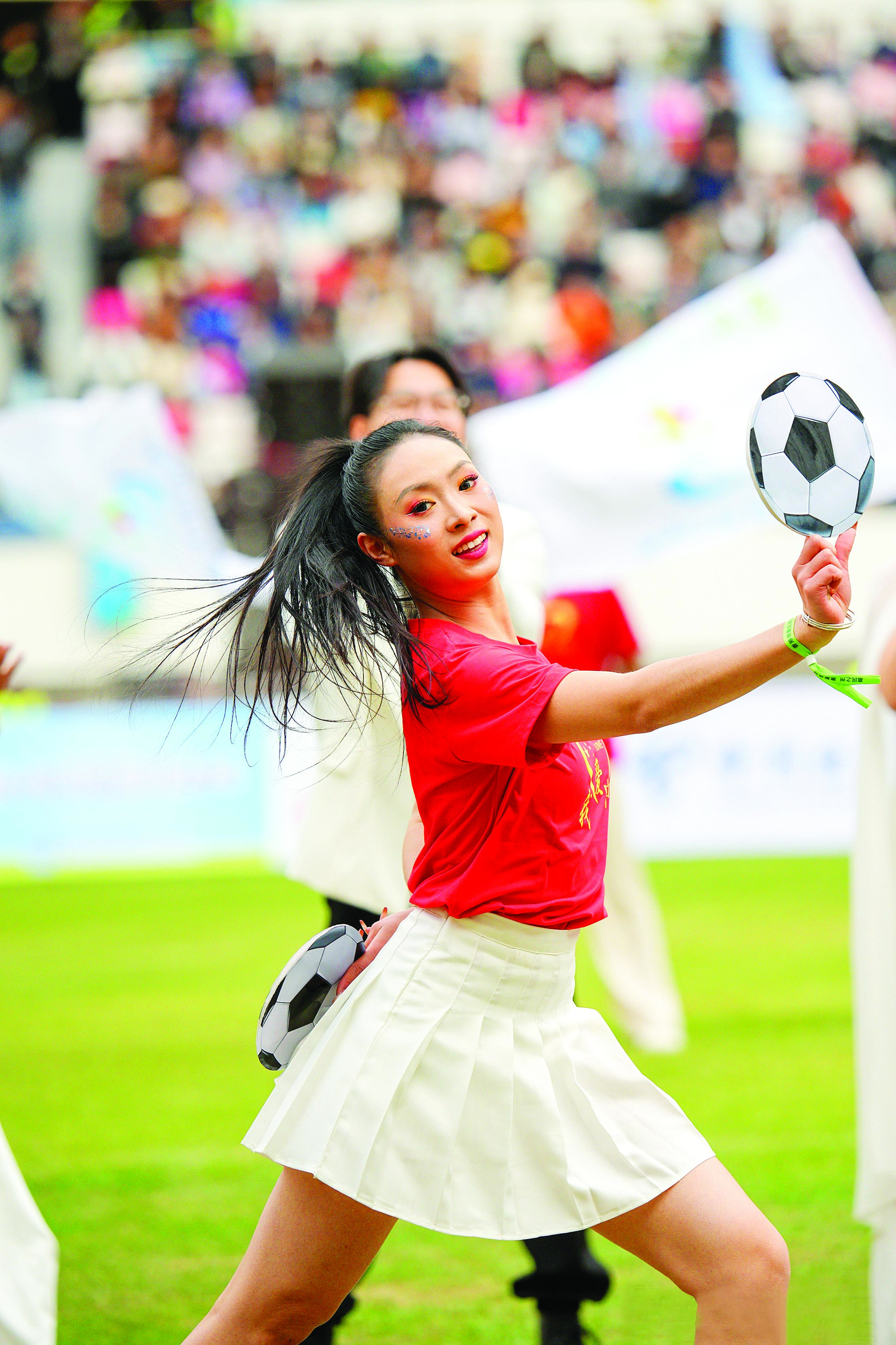 大人聽歌投入,小孩看比賽也津津有味。“媽媽快看!我的教練在場上踢球!”對于鄧慧平9歲的兒子星星來說,更吸引他的是足球和熟悉的人。場上,女子足球隊(duì)45號球員劉瑩是他的足球教練。看見自己的教練在場上飛奔,星星無比激動,每次觸球都為她加油吶喊,惹得7歲的女兒彤彤直喊:“媽媽我也想學(xué)足球!”