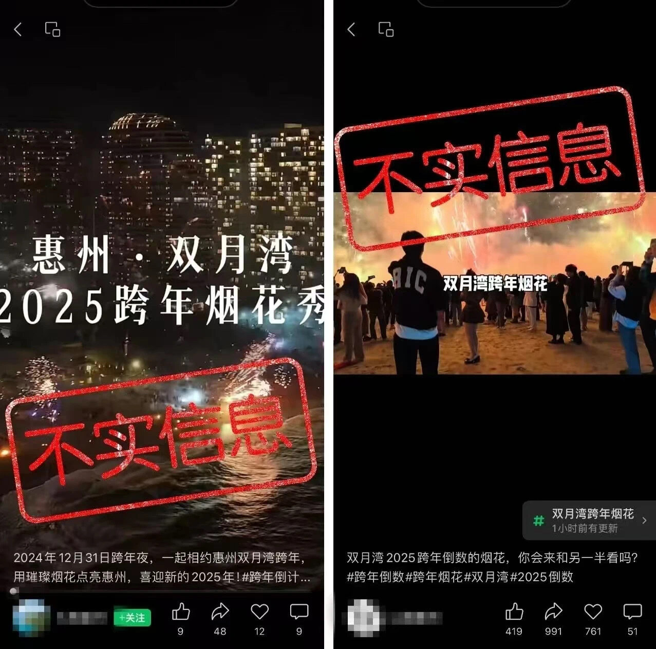 近期,網(wǎng)絡(luò)上出現(xiàn)“惠州雙月灣2025跨年煙花秀”“2025雙月灣跨年倒數(shù)夜”“雙月灣跨年煙花秀”等信息,經(jīng)惠東縣相關(guān)部門核實,網(wǎng)傳信息均系不實信息。