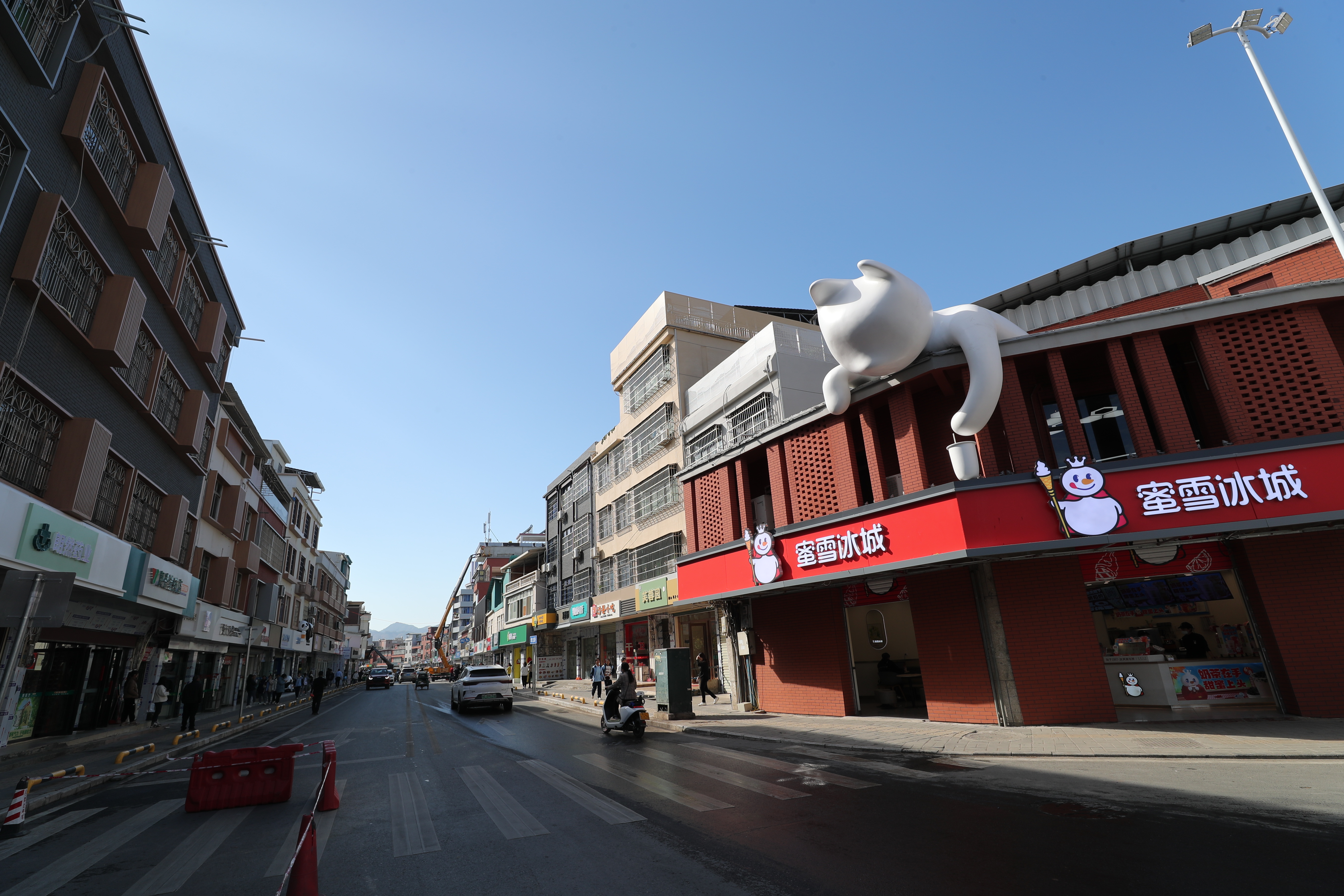 在龍門縣永漢鎮(zhèn),增龍路段創(chuàng)新打造的“貓街”尤為引人注目,一個個憨態(tài)可掬的貓形塑像栩栩如生,不僅為當?shù)卦鎏砹诵碌慕志帮L貌,更成為游客拍照打卡的網(wǎng)紅點。這些貓形塑像是永漢鎮(zhèn)創(chuàng)新打造的文旅品牌形象——“尋貓之旅”的重要組成部分,也是增龍路段品質提升改造工程的亮點之一。通過特色街道的品質改造升級,不僅實現(xiàn)了沿街管理有序、立面整新,還全面提升了居民的生活環(huán)境和生活品質。