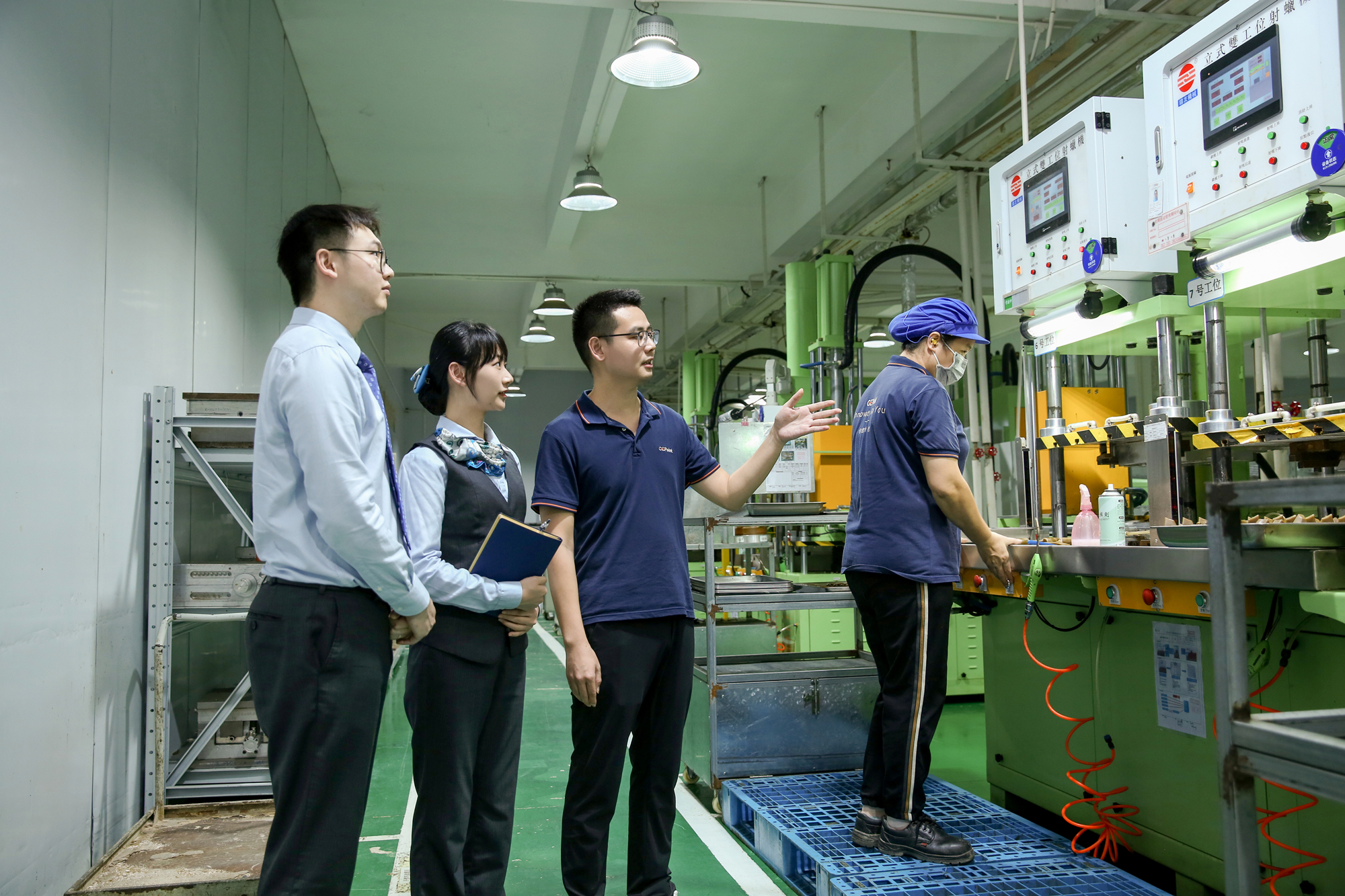 惠州農(nóng)行工作人員考察企業(yè)生產(chǎn)情況。