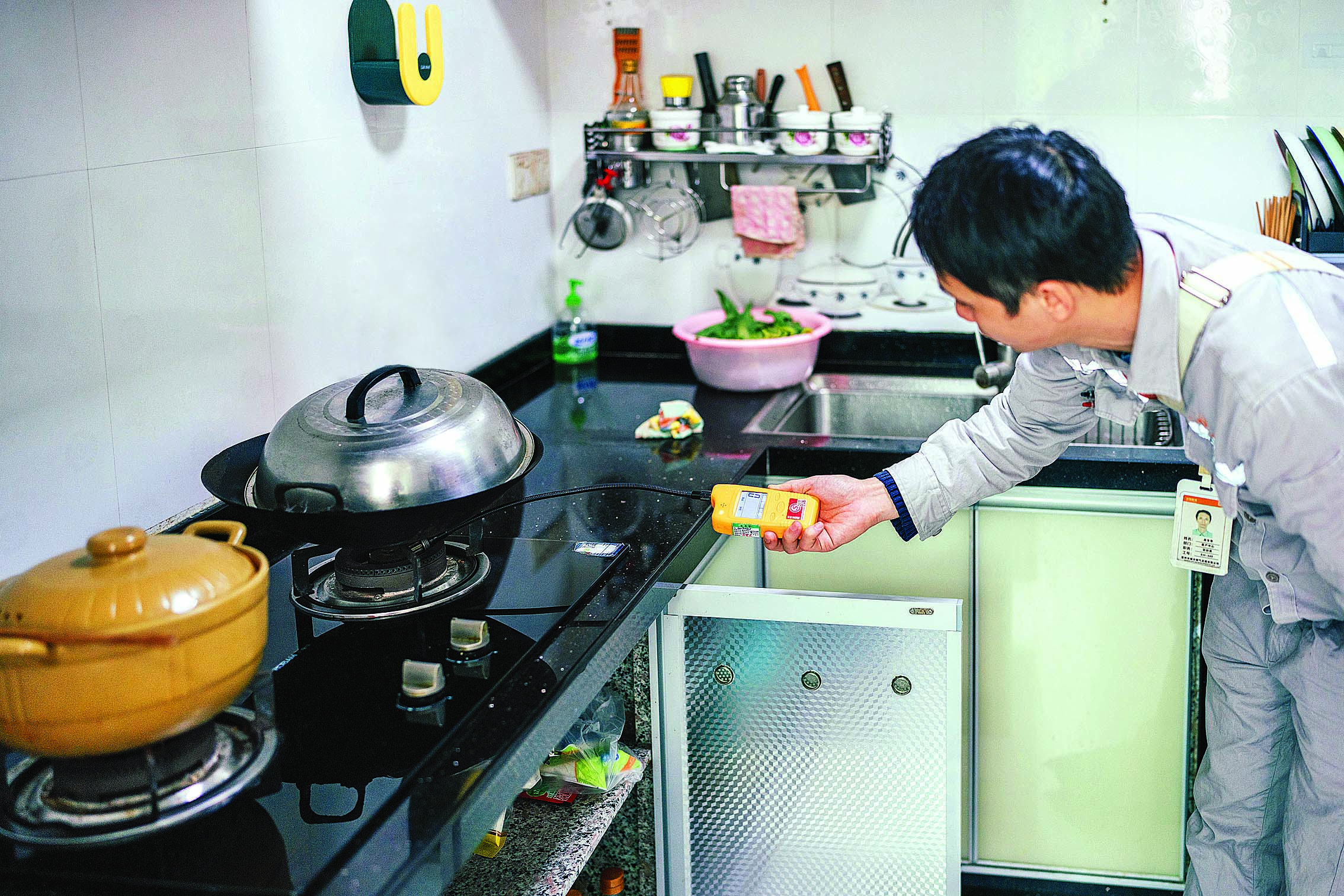 惠州燃氣工作人員開展入戶安檢。惠州日報記者周楠 攝