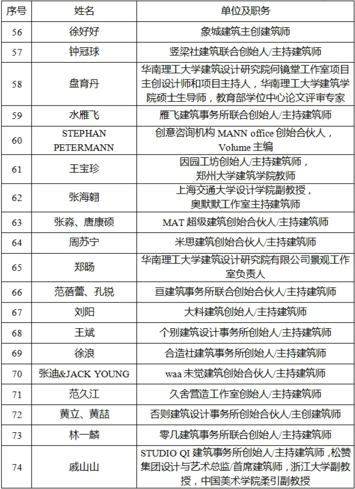建筑藝術計劃百大人才庫成員名單