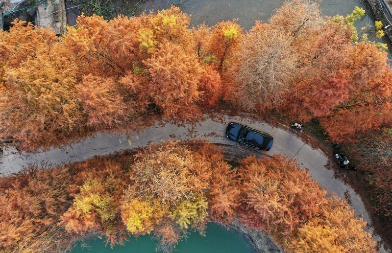近日,仲愷高新區(qū)潼湖鎮(zhèn)F33鄉(xiāng)道到梅坑路段,一片落羽杉披上了“紅裝”,狀如羽毛的枝葉隨風(fēng)搖曳,深深淺淺的橘紅色在陽光的照耀下顯得分外耀眼絢麗,宛如油畫般詩情畫意,吸引了不少市民游客打卡拍照。