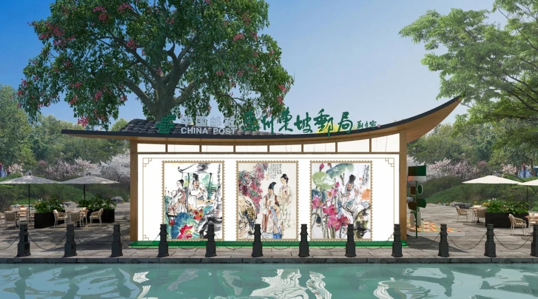 東坡主題郵局提取宋代建筑和東坡文化元素,結合西湖景觀,融合郵文化元素,并選取當代著名畫家劉克寧老師《問墨蘇東坡》畫作進行設計建造,連主題郵局的郵筒設計都別具特色,讓人驚艷!游客不僅可以在東坡郵局寄出給親人朋友的明信片,還可在游西湖時欣賞東坡郵局背面的燈光透視圖——《問墨蘇東坡》精美畫作。惠州東坡郵局將成為西湖景區(qū)文化、東坡文化和城市文化的全新展示窗口。