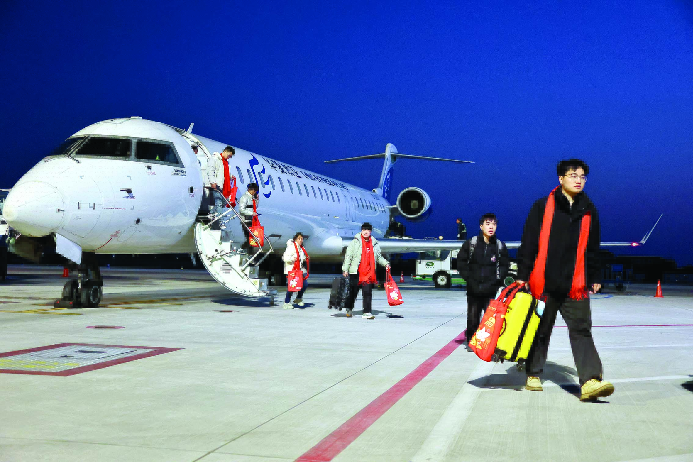 2月4日傍晚,一架從貴州黔西南州興義萬峰林機場起飛的返崗專機,安全降落惠州平潭機場。這趟班機是惠州市2025年返崗務工包機。惠州日報記者李松權 攝