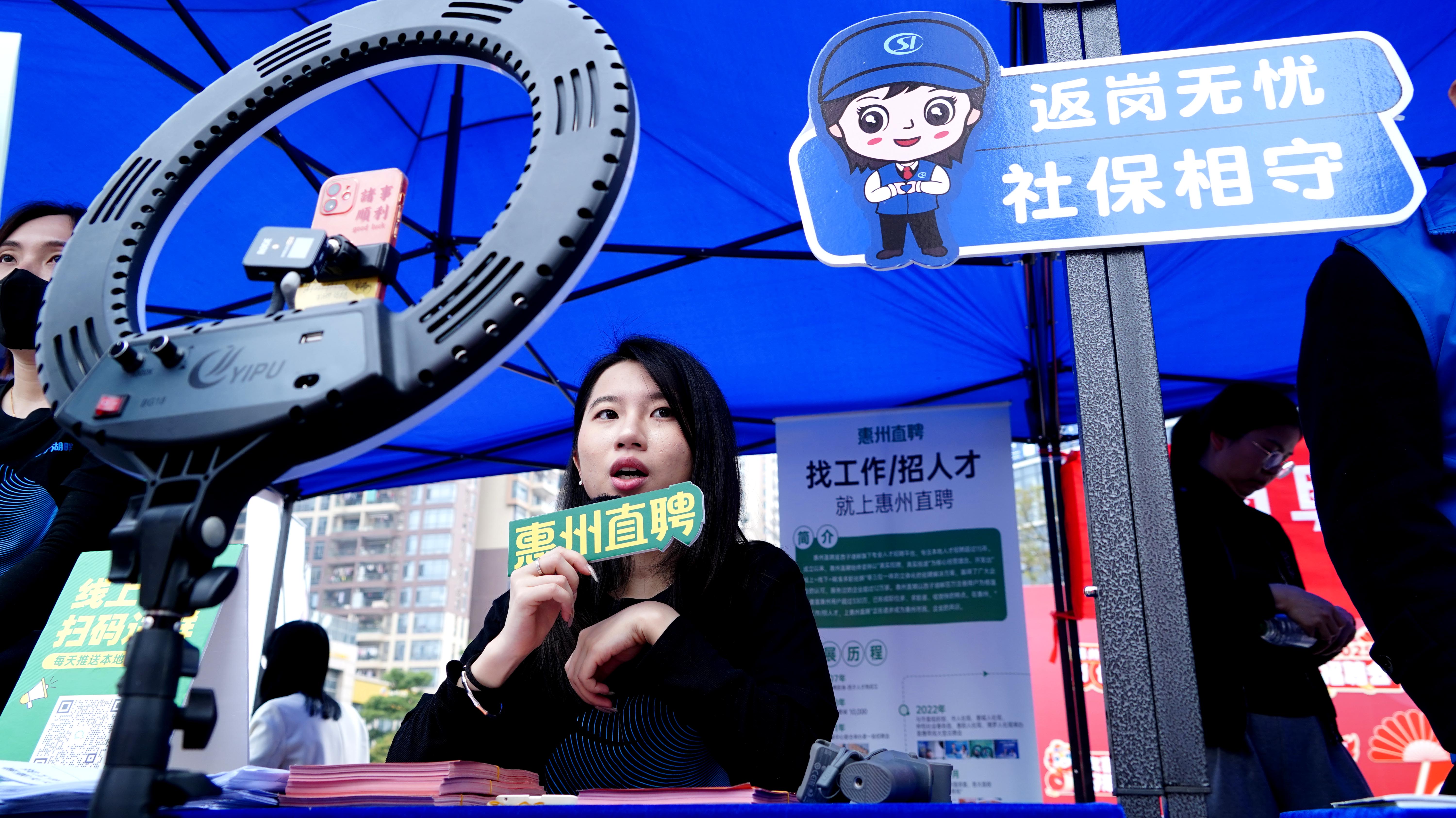 直播帶崗成為招聘會的新亮點。惠州日報記者李松權 攝
