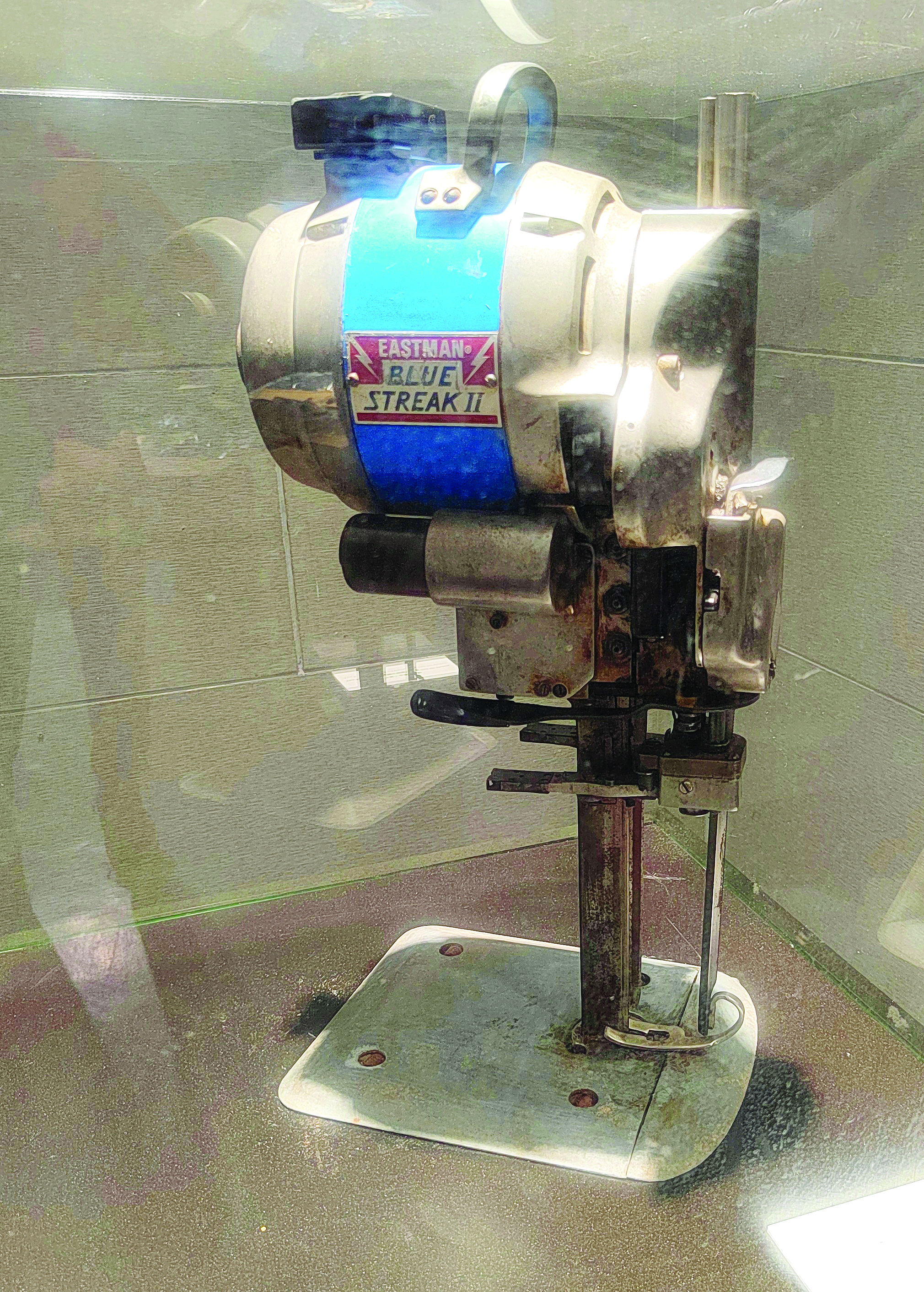 進入館內(nèi),服飾生產(chǎn)工具展示點綴其中,各式各樣的縫紉機、裁床電剪、熨斗等工具出現(xiàn)在眼前,它們浸潤過工人們、設(shè)計師們的汗水智慧,如今已經(jīng)退役,成為一件件藏品甚至加工成工藝品,展示著企業(yè)不凡的成長歷程。現(xiàn)場可供操作的鎖眼機、縫紉機、釘紐扣、繡花機,寓意著工業(yè)生產(chǎn)的不息動力。