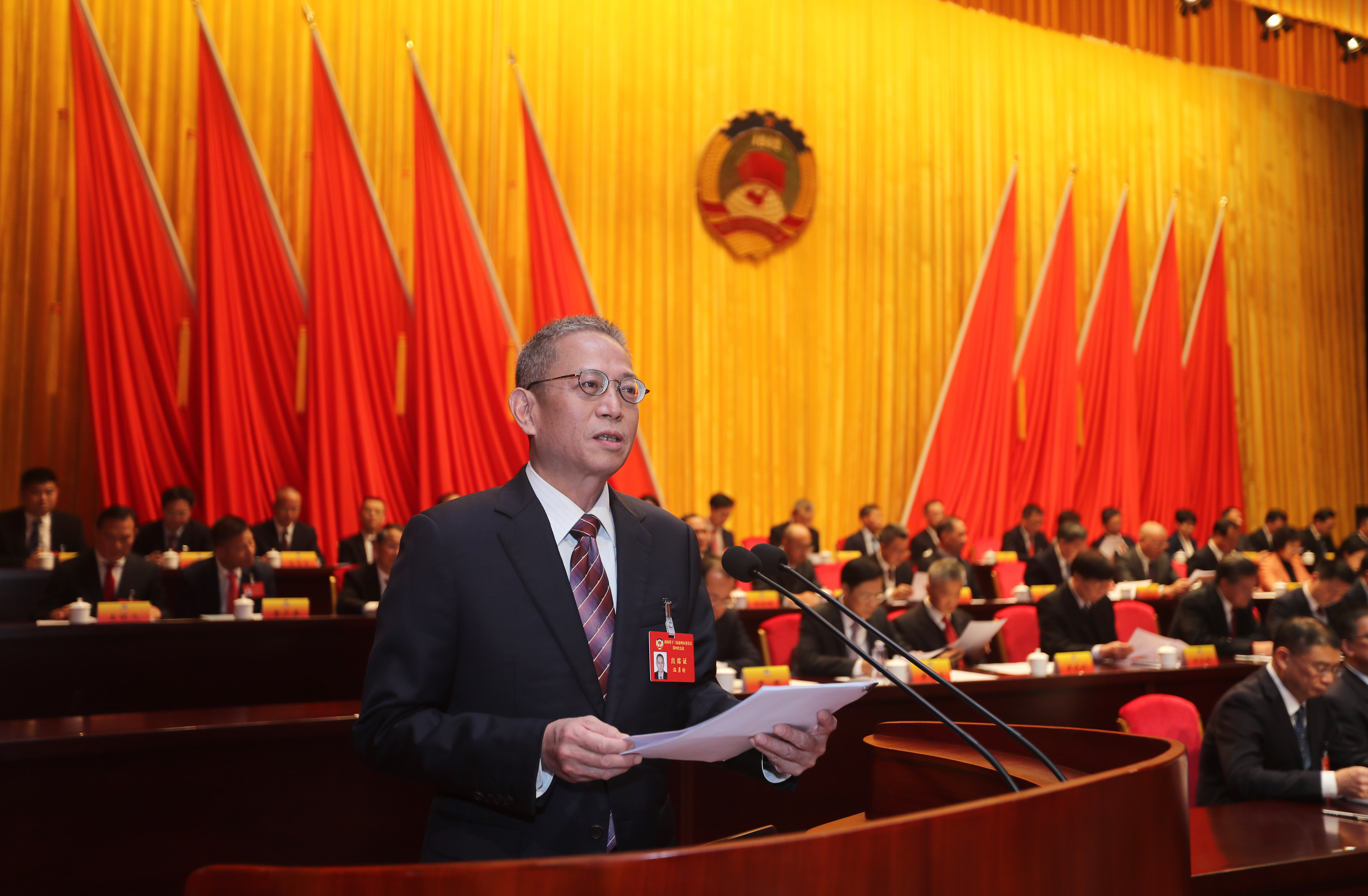 溫勇瑜向大會(huì)作政協(xié)常委會(huì)工作報(bào)告。