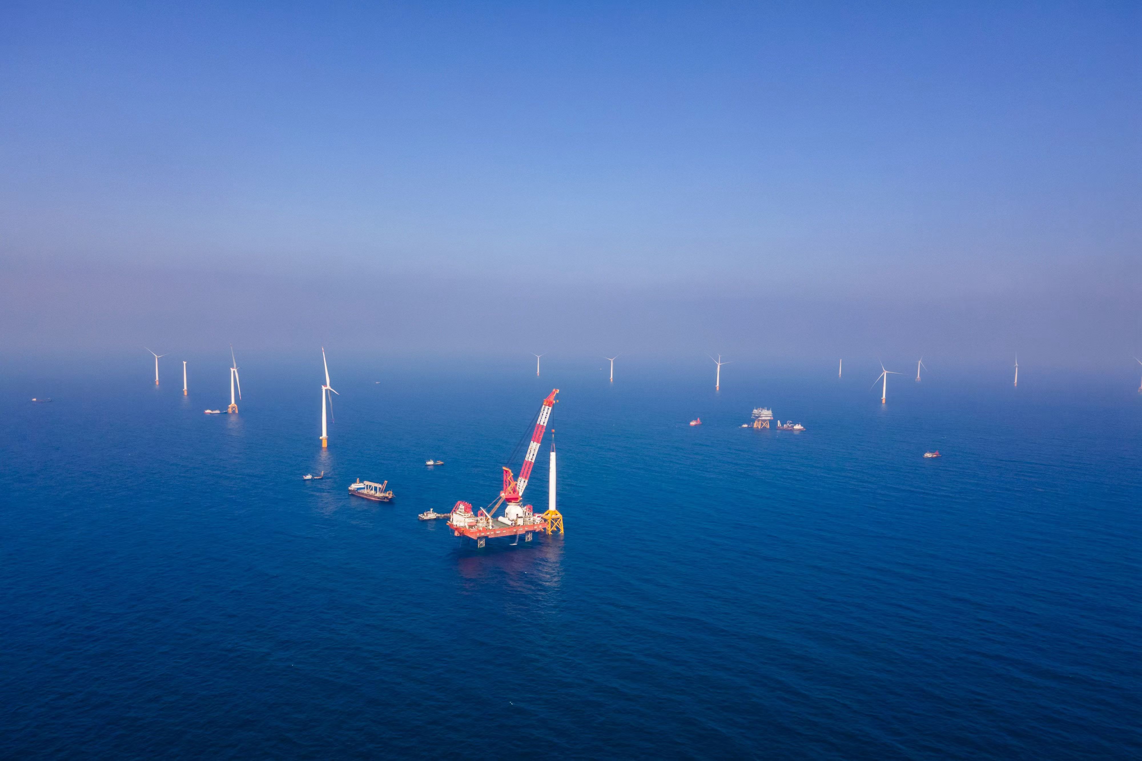 惠州引進一大批好項目大項目,不斷積蓄發(fā)展新動能。這是惠州港口海上風電項目。惠州東江圖片社供圖