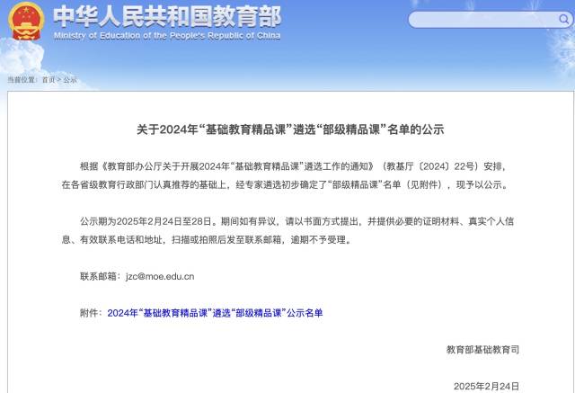 教育部公示“部級精品課”名單。