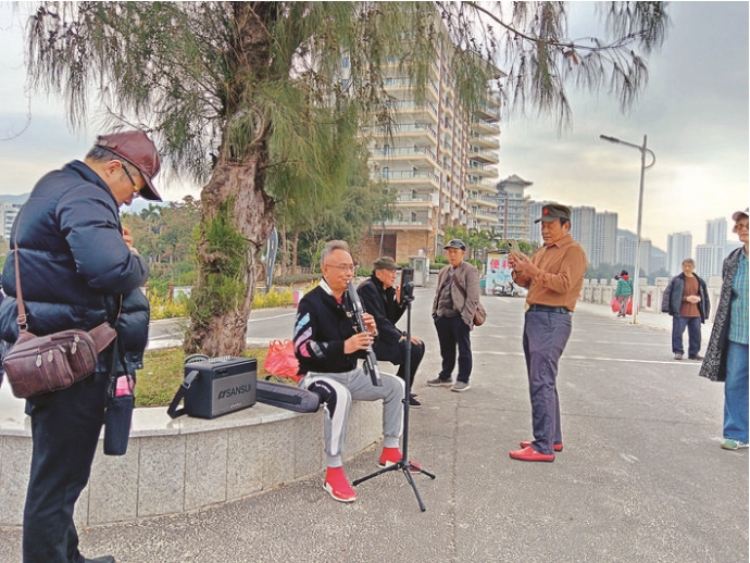 當(dāng)海風(fēng)拂過惠東巽寮灣的海岸線時,來自重慶的艾民正在漁業(yè)村雙魚島廣場吹奏薩克斯,這是他第二年到惠州濱海旅居過冬,每次都要待上幾個月。