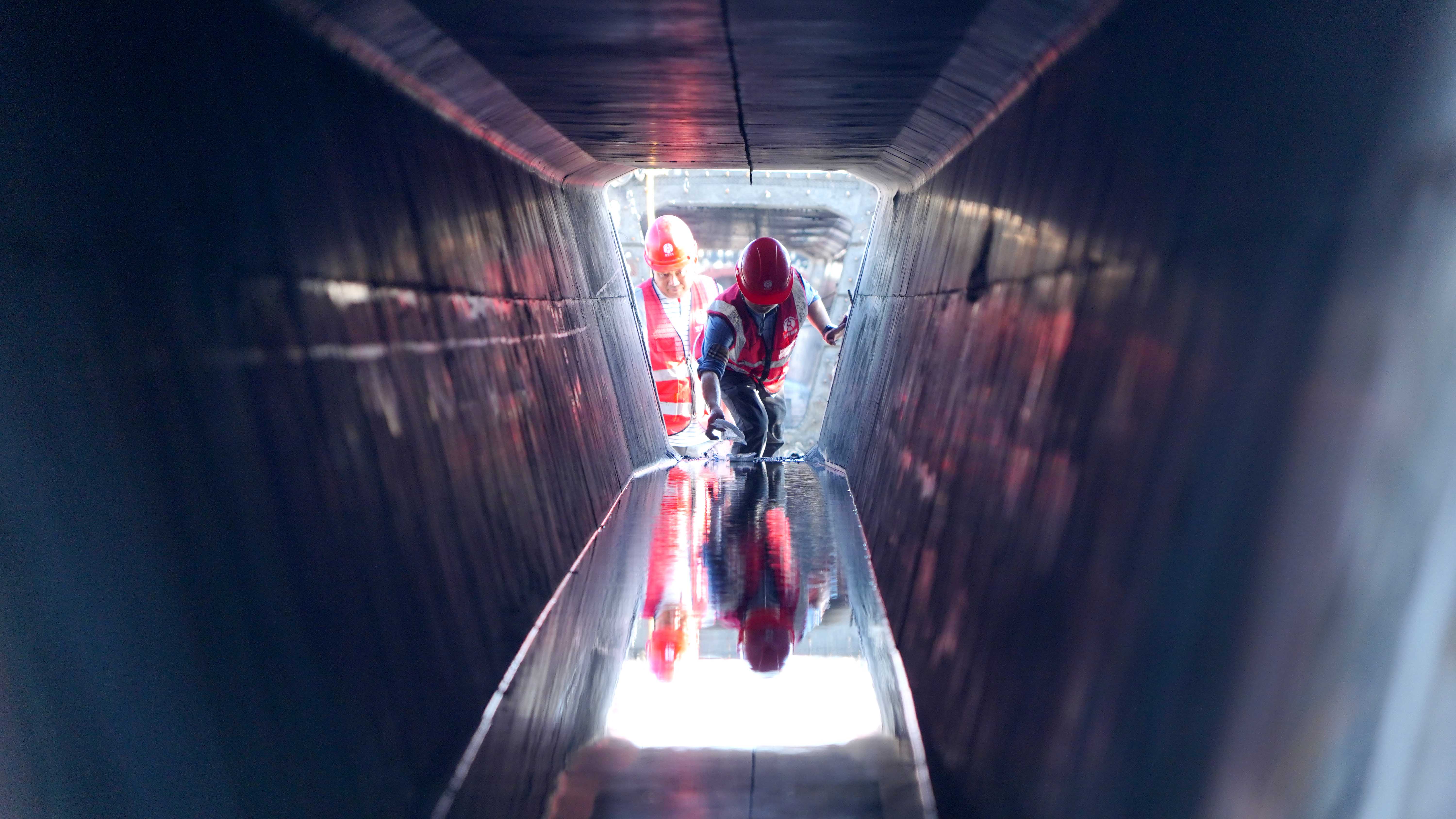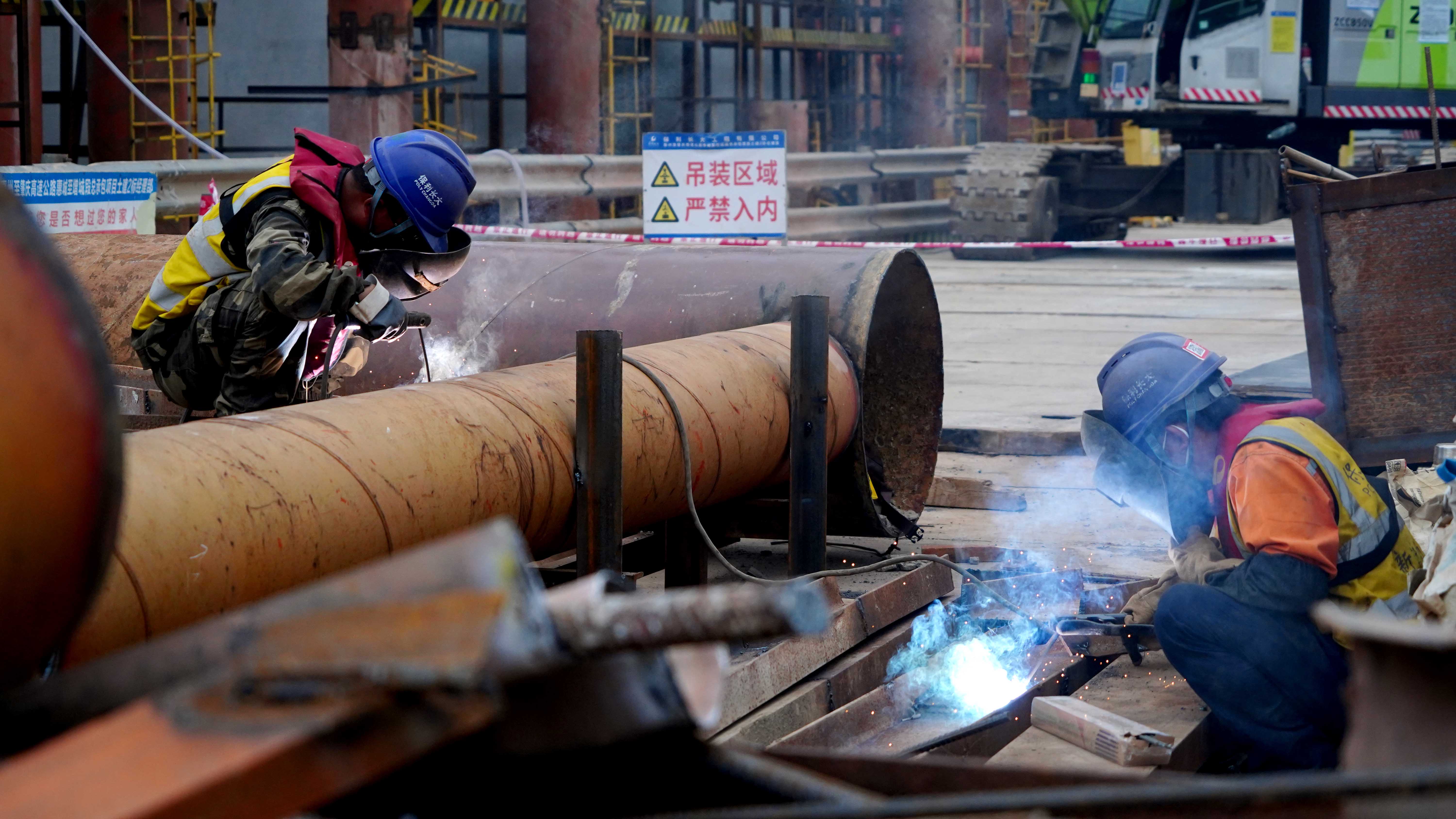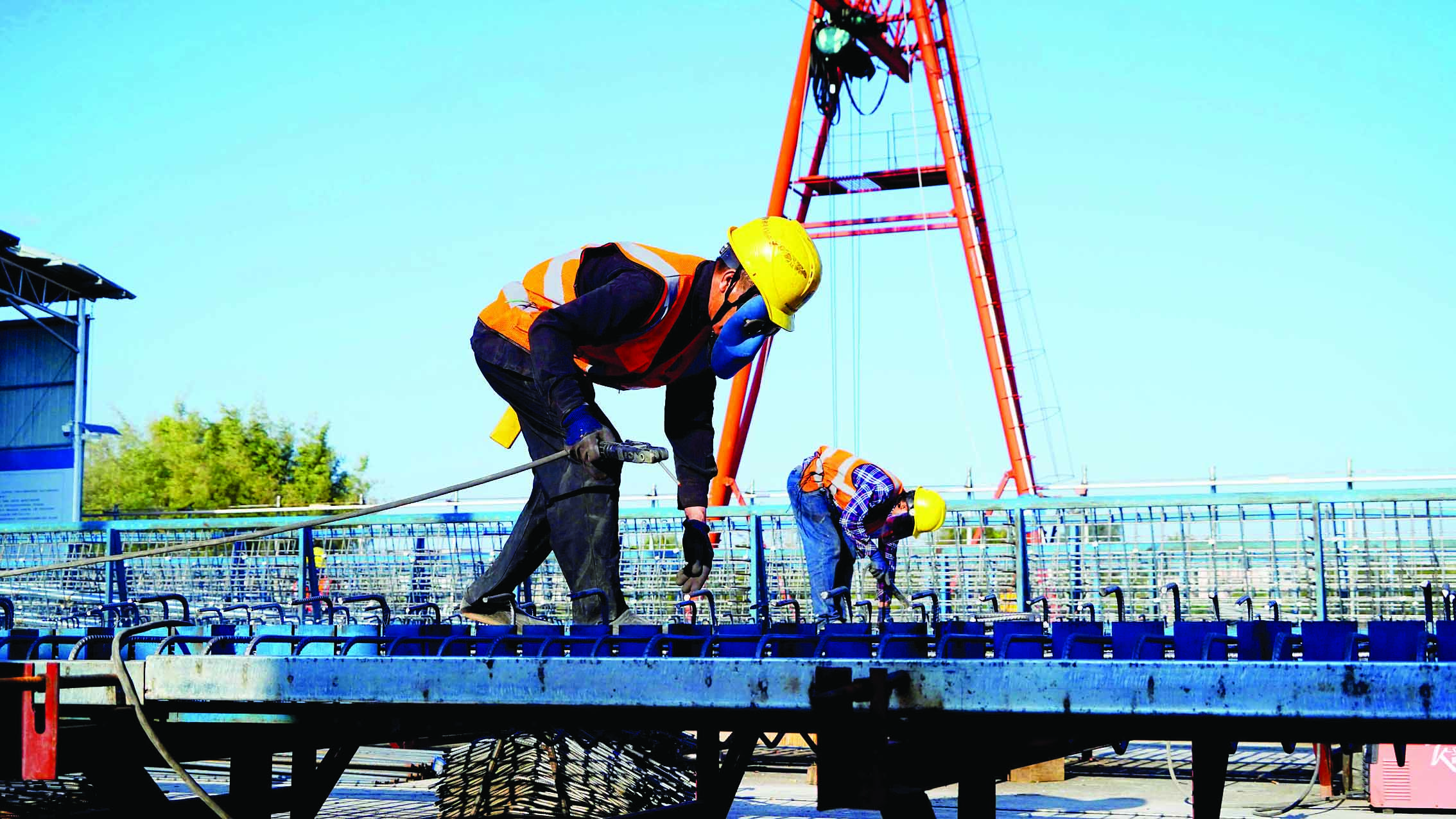 1號(hào)公路7號(hào)制梁場(chǎng),工人正在生產(chǎn)作業(yè)。