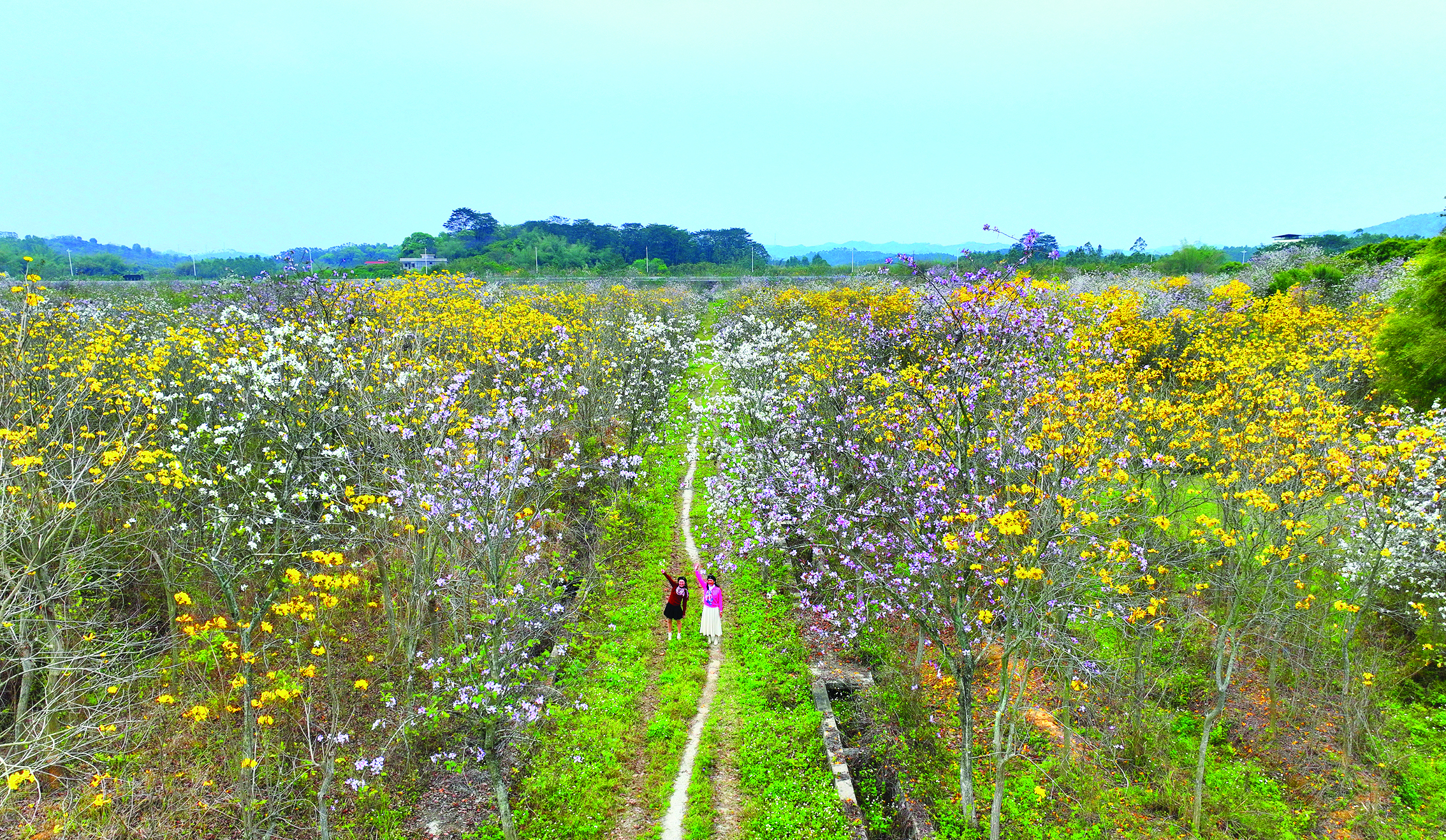 近日,博羅縣泰美鎮(zhèn)車村村的宮粉紫荊花和黃花風鈴木盛開,吸引大量市民前往打卡。這片200多畝的花海成為熱門景點,游客紛紛拍照留念,享受自然美景。當?shù)赝ㄟ^發(fā)展鄉(xiāng)村旅游,不僅提升了村莊的知名度,還帶動了經(jīng)濟發(fā)展。