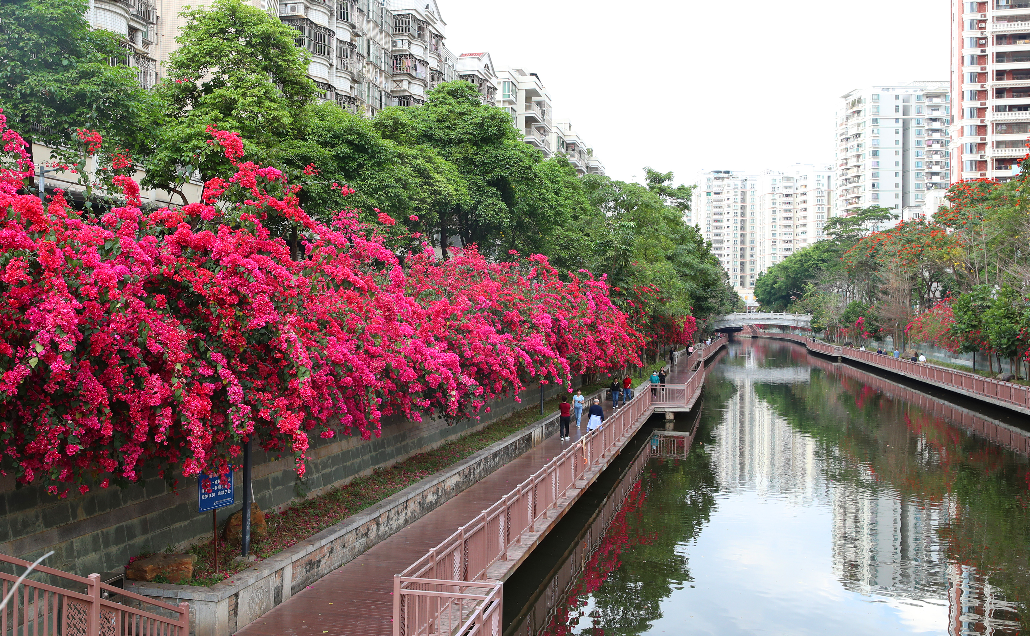 春天,草長鶯飛,百花盛開。惠州市區(qū)金山河沿岸的三角梅近日競相開放,春意盎然,嬌艷的花朵仿佛給金山河兩岸“戴”上了一條美麗的花帶,一路繁花錯落有致,美得令人心醉,成為了市區(qū)一道亮麗的景觀。連日來,金山河畔吸引了大量市民和游客前來打卡。