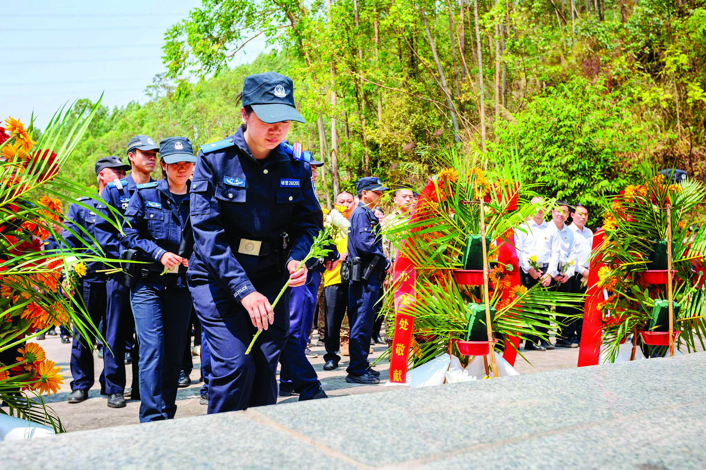 仲愷高新區(qū)公安分局惠新派出所民警向英烈獻花。通訊員蔡文浩供圖