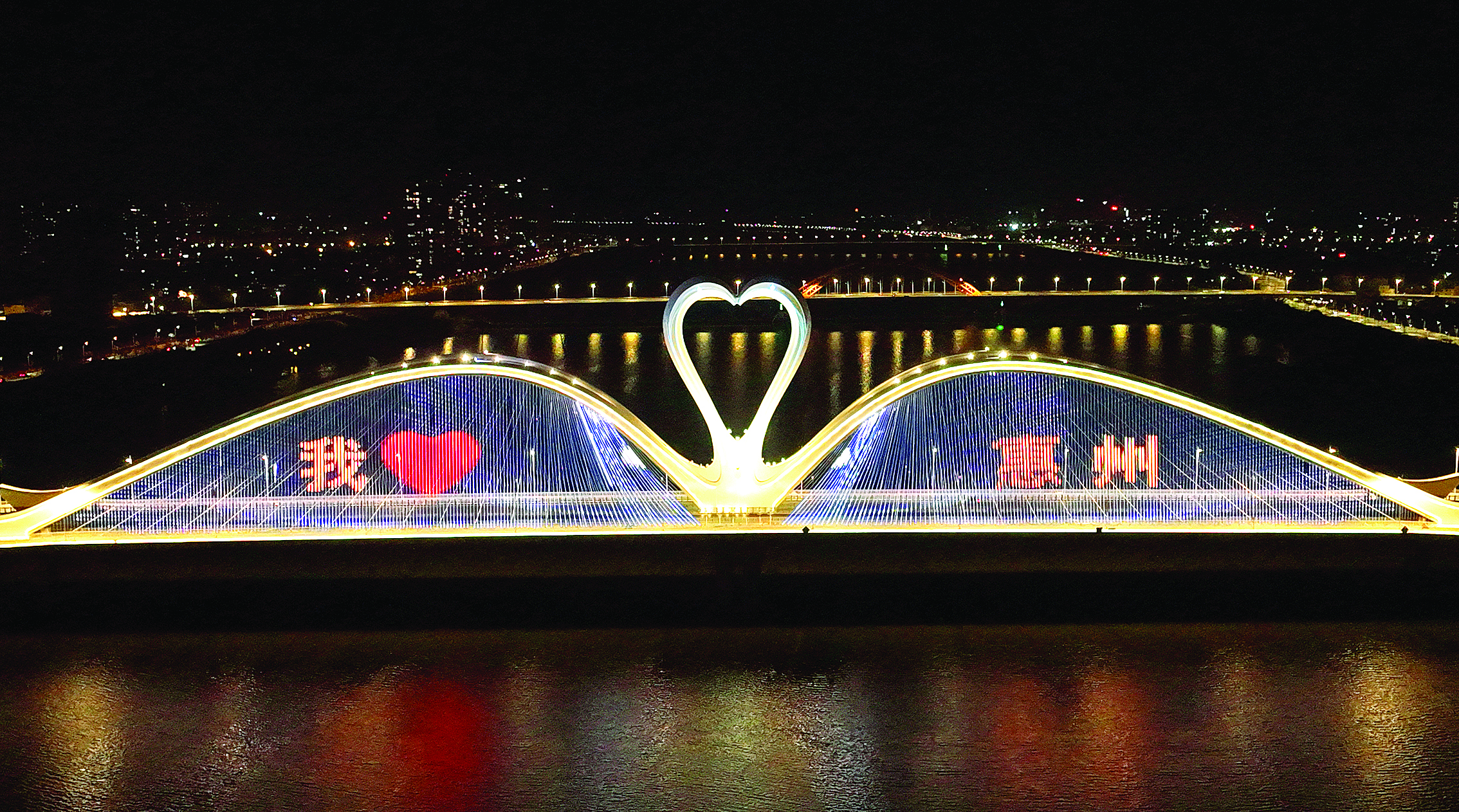 “在惠州,連橋都是愛你的形狀。”當(dāng)東江兩岸華燈初上,橫跨東江的鵝城大橋便以光影編織浪漫,用璀璨的方式向城市告白。今年以來,這座“戀愛腦”大橋通過動畫視頻燈光秀,以現(xiàn)代科技演繹惠州千年古城文化,吸引人們紛紛打卡。