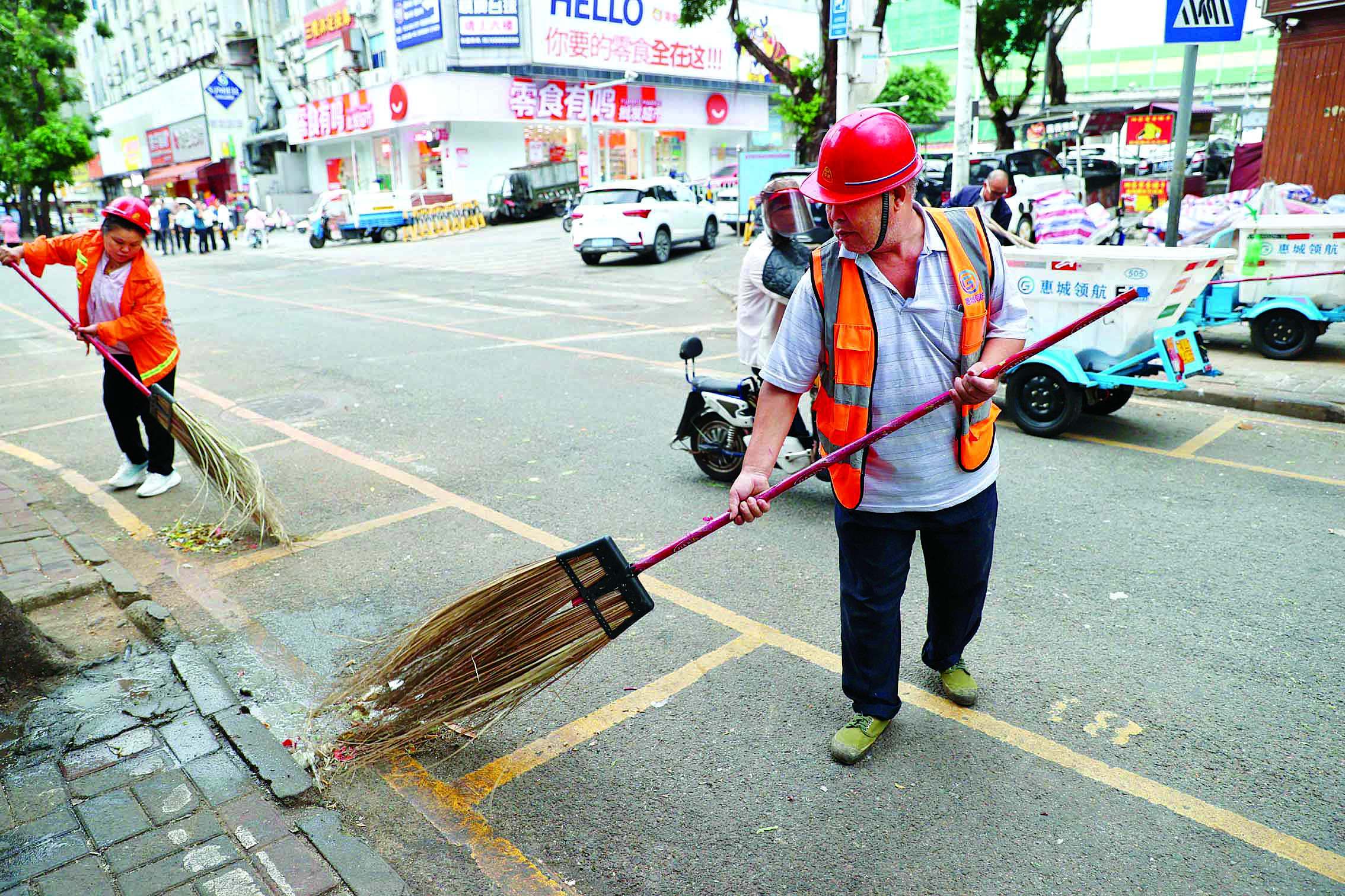 環(huán)衛(wèi)工人在老城區(qū)打掃衛(wèi)生。惠州日?qǐng)?bào)記者楊建業(yè) 攝