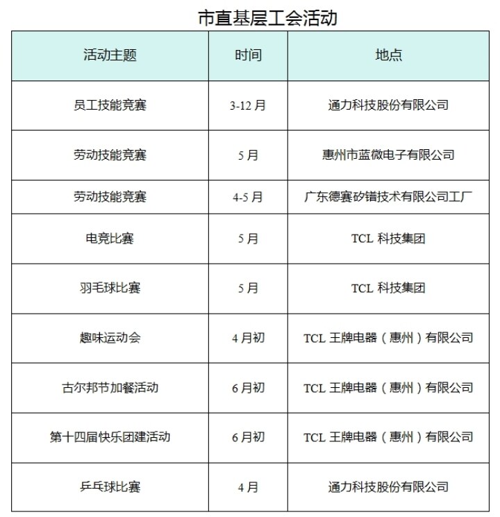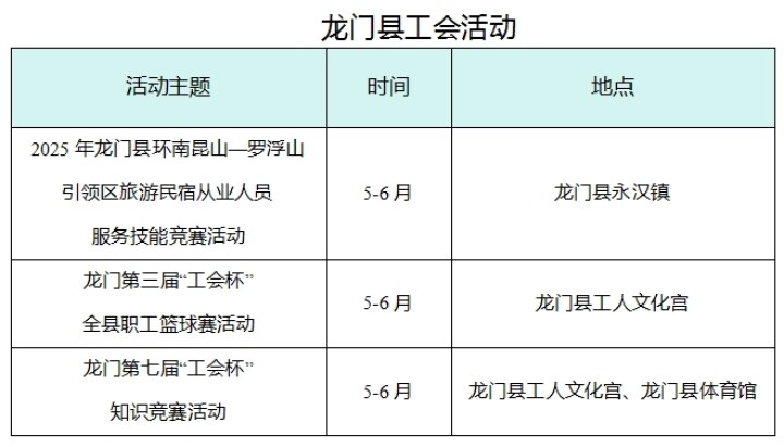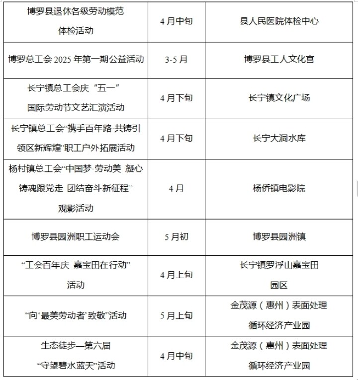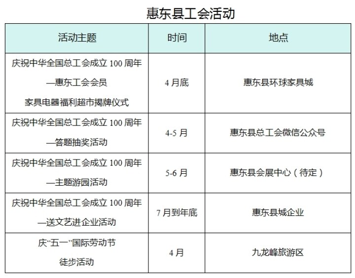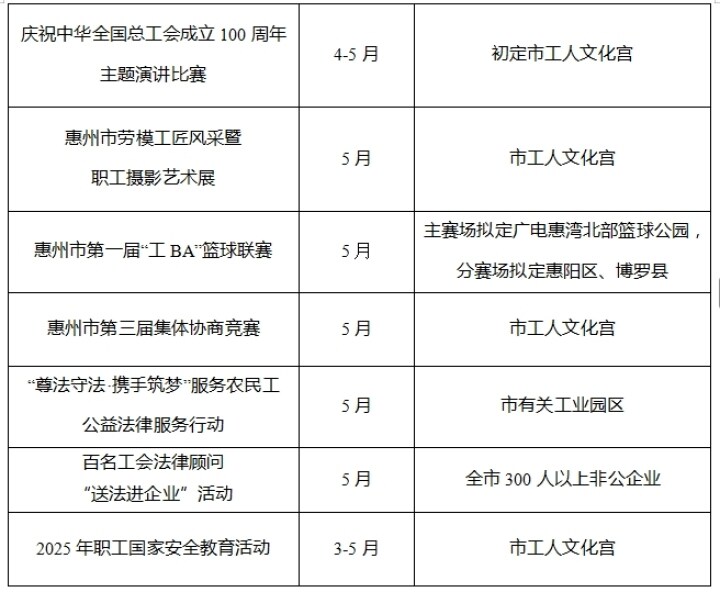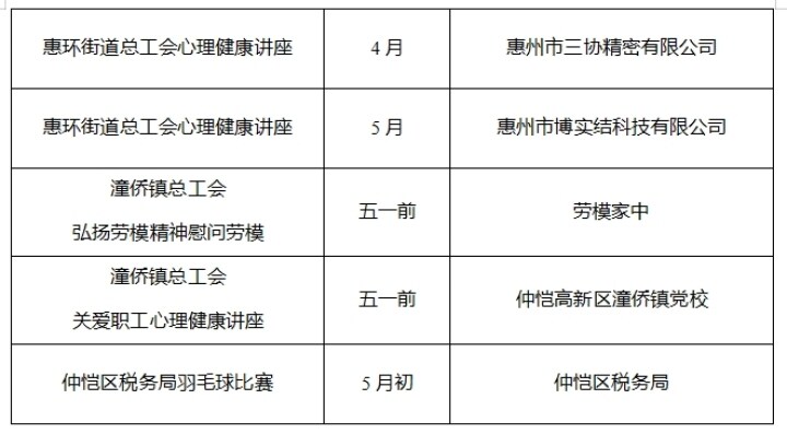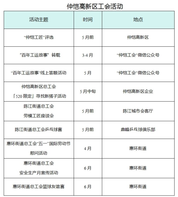 溫馨提示:以上活動(dòng)內(nèi)容將視具體情況進(jìn)行微調(diào),具體可咨詢所在地基層工會(huì)或市、縣(區(qū))總工會(huì)。