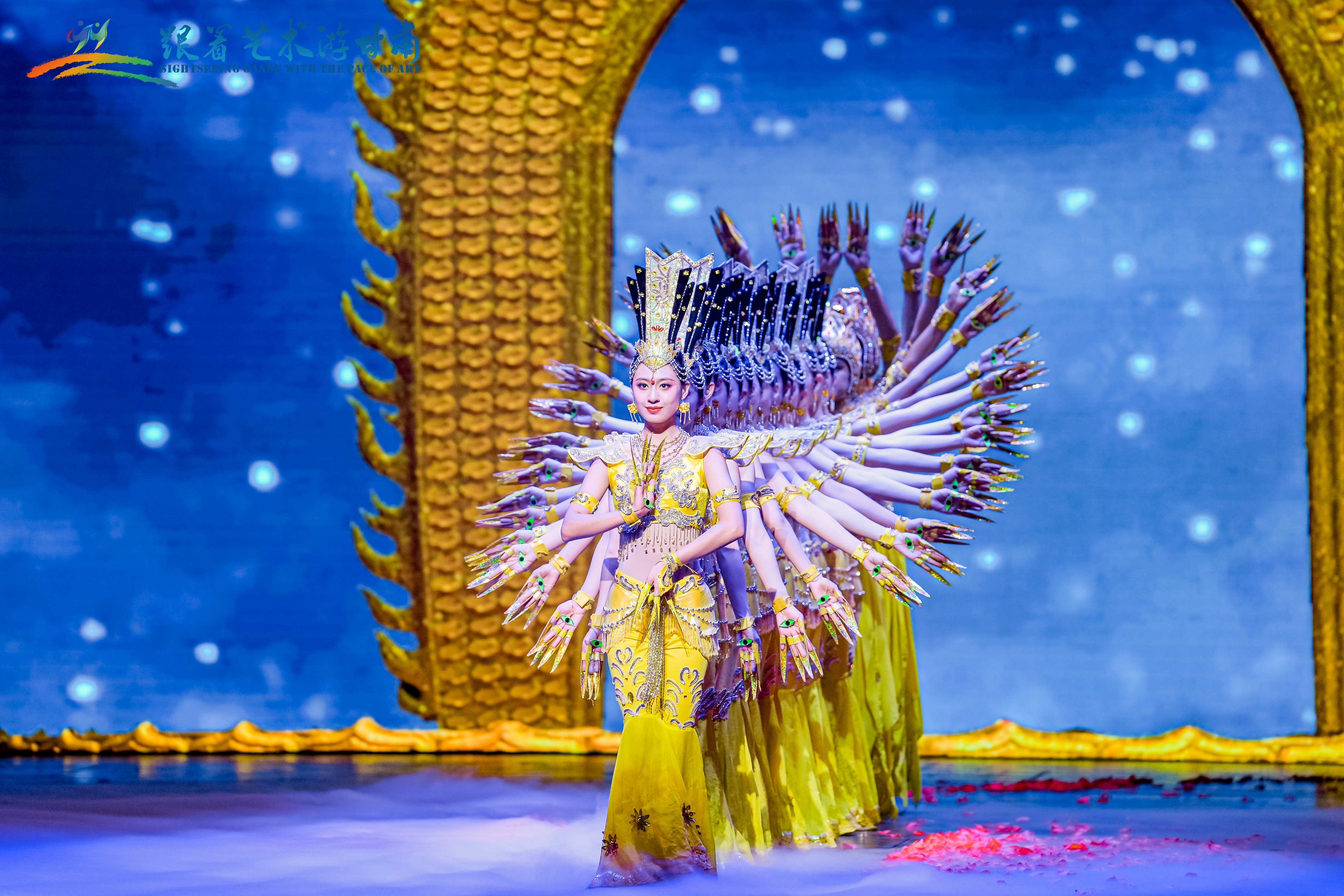 悠揚(yáng)的音樂響起,演員們依次登臺,充滿激情的舞者用飽滿的熱情,將感人至深的傳奇故事娓娓道來,充分展示了中華優(yōu)秀傳統(tǒng)文化的獨(dú)特魅力。立體而逼真的舞美效果,仿佛將觀眾帶回到了那個遙遠(yuǎn)的年代,讓人身臨其境。當(dāng)劇目接近尾聲,“千手千眼”的設(shè)計(jì)與表演更是將現(xiàn)場氣氛推向高潮,其震撼效果讓現(xiàn)場觀眾爆發(fā)出陣陣掌聲。