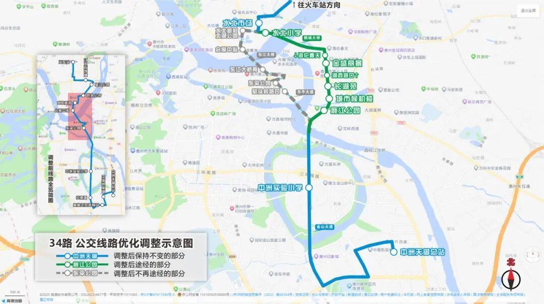 1. 取消行駛惠澳大道、三環(huán)南路部分路段,改由惠澳大道經(jīng)翠竹一路、金山湖二號橋、瞰湖三路、湖濱南路、湖心路、金山大道至金山大橋接回原線路。