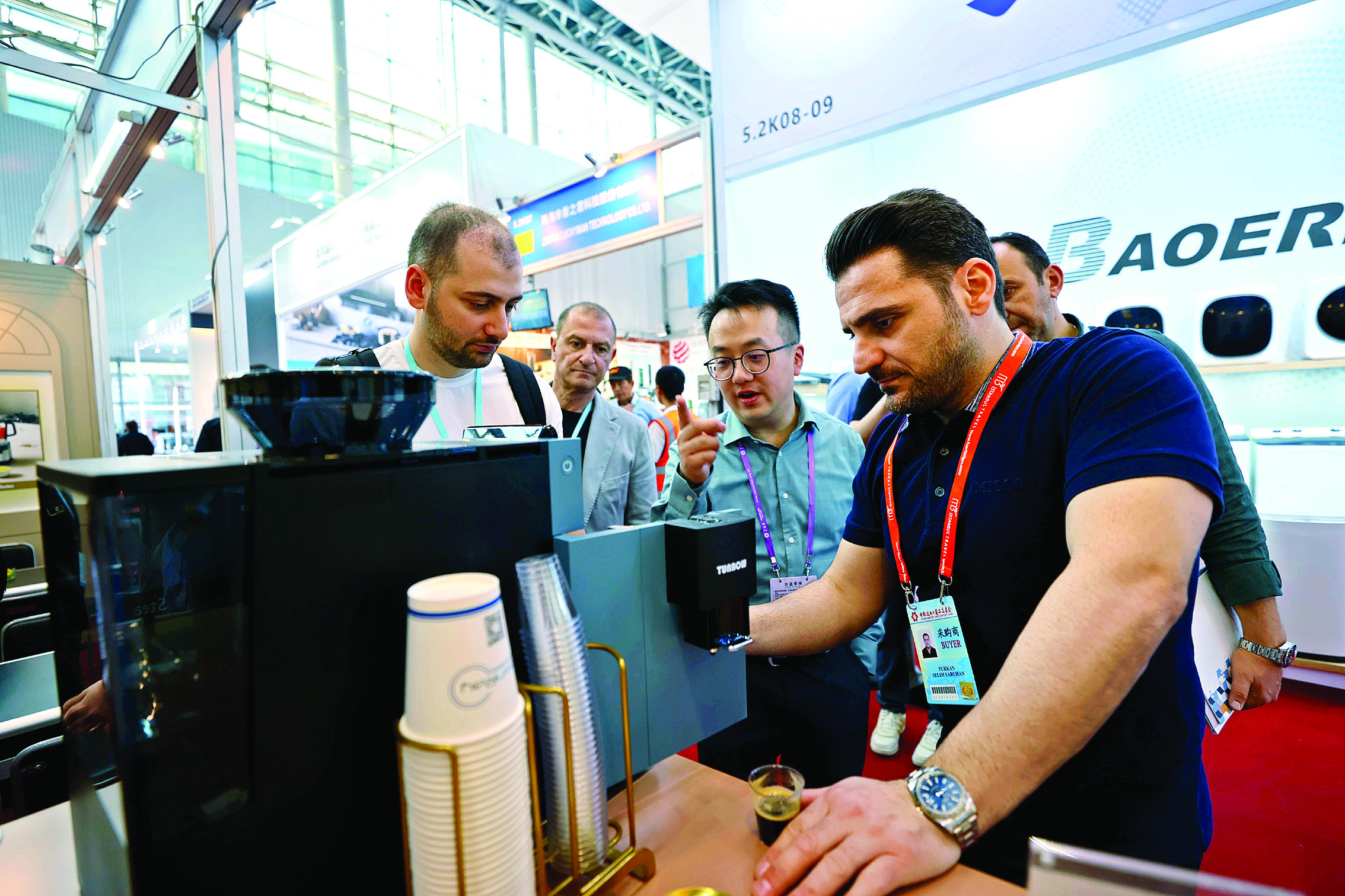 登輝電器展出的咖啡機(jī)吸引不少客商駐足。