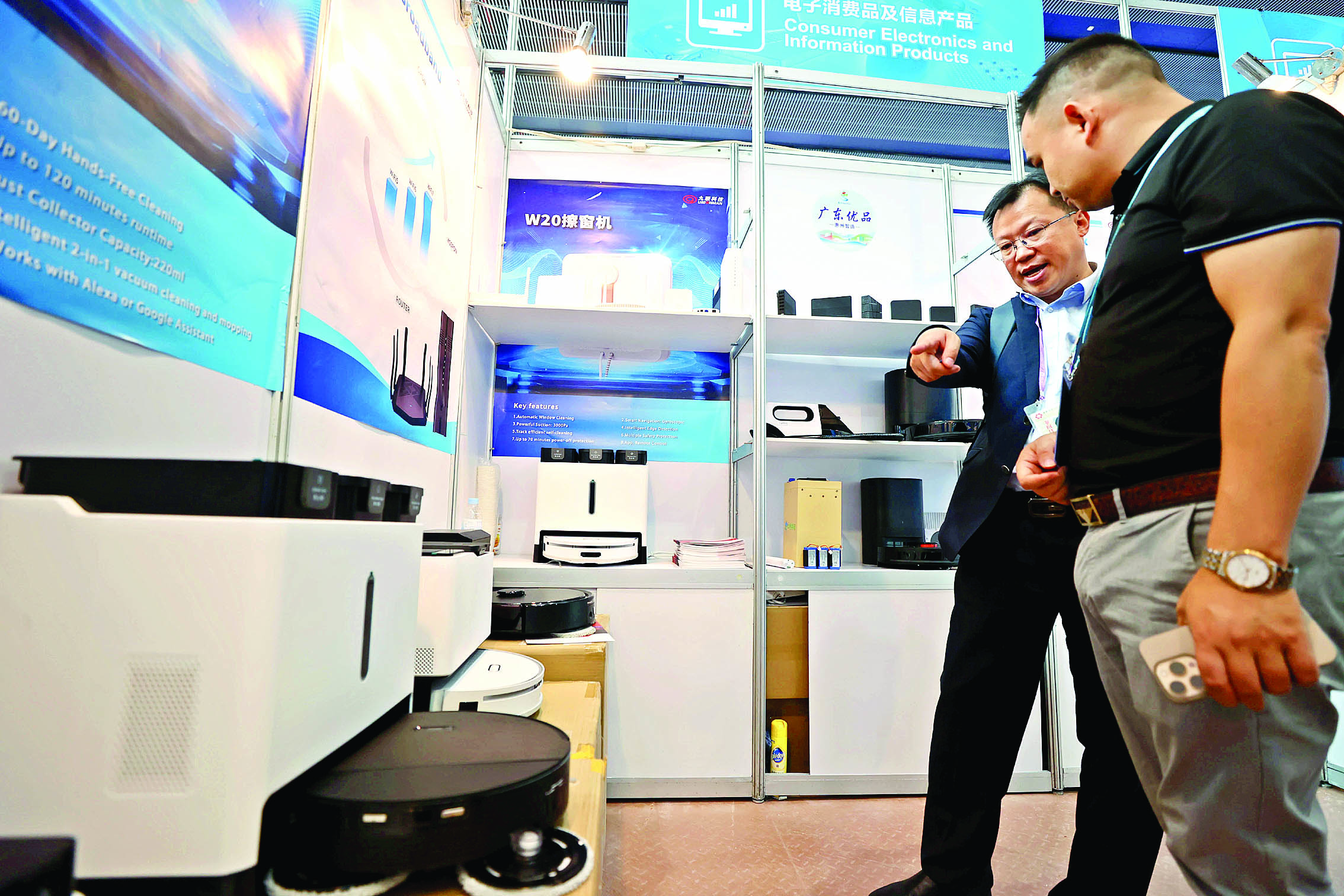 采購(gòu)商在惠州企業(yè)展區(qū)洽談。
