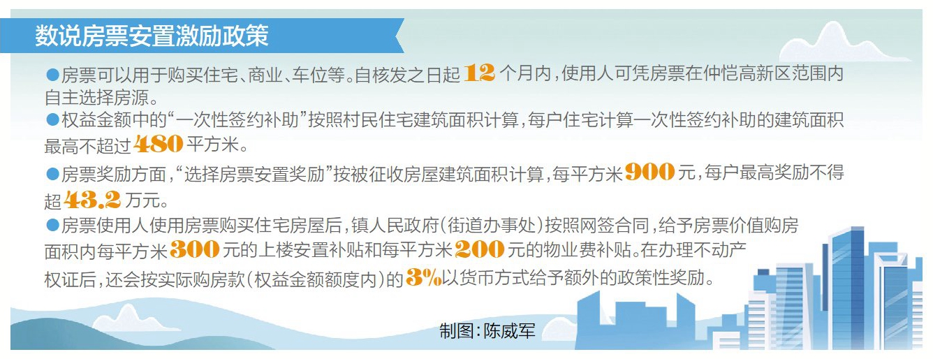根據(jù)《方案》,房票可以用于購(gòu)買住宅、商業(yè)、車位等。自核發(fā)之日起12個(gè)月內(nèi),使用人可憑房票在仲愷高新區(qū)范圍內(nèi)自主選擇房源。像李先生持有的首張房票,票面價(jià)值約300萬(wàn)元,該金額由權(quán)益金額和房票獎(jiǎng)勵(lì)構(gòu)成。權(quán)益金額中的“一次性簽約補(bǔ)助”按照村民住宅建筑面積計(jì)算,每戶住宅計(jì)算一次性簽約補(bǔ)助的建筑面積最高不超過(guò)480平方米。房票獎(jiǎng)勵(lì)方面,“選擇房票安置獎(jiǎng)勵(lì)”按被征收房屋建筑面積計(jì)算,每平方米900元,每戶最高獎(jiǎng)勵(lì)不得超43.2萬(wàn)元。“臨時(shí)安置補(bǔ)助費(fèi)獎(jiǎng)勵(lì)”按被征收房屋建筑面積一次性獎(jiǎng)勵(lì)12個(gè)月。這就為被征收人提供了更多的選擇與實(shí)惠。