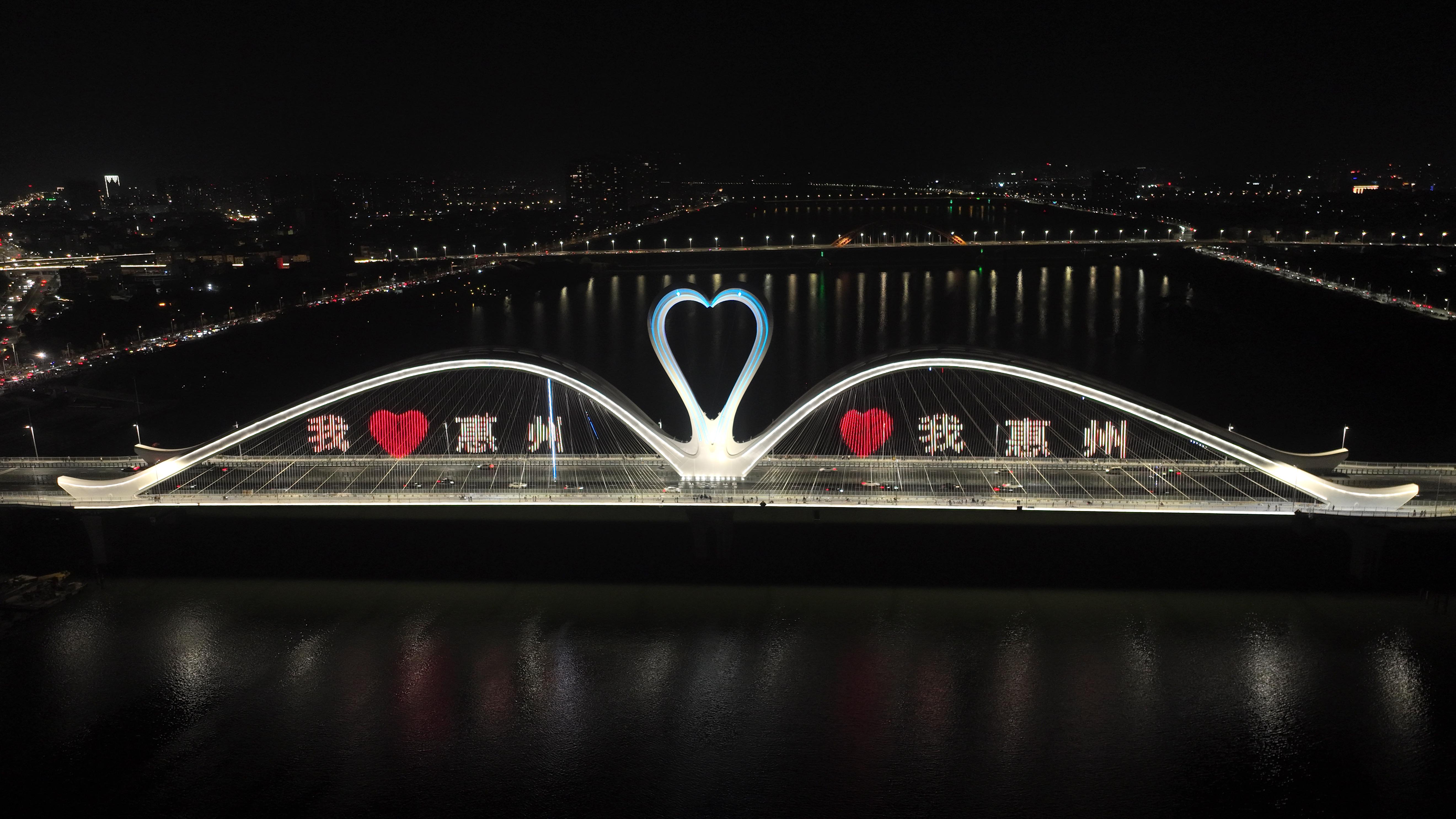鵝城大橋通車后,不僅成為市區(qū)的交通要道,更化身為惠州的網(wǎng)紅景點(diǎn)。大橋橋體安裝了15.7萬點(diǎn)光源、5000盞洗墻燈,在惠州首次運(yùn)用激光技術(shù),通過16臺激光燈勾勒出大橋“天鵝”造型。每到節(jié)假日晚上,鵝城大橋就開啟燈光秀,充分展現(xiàn)惠州東坡文化以及特色節(jié)日文化。